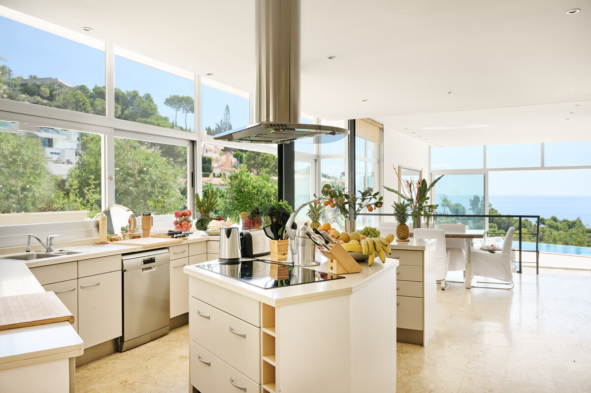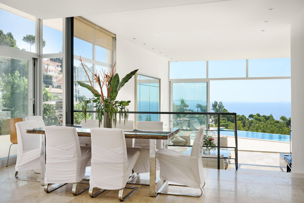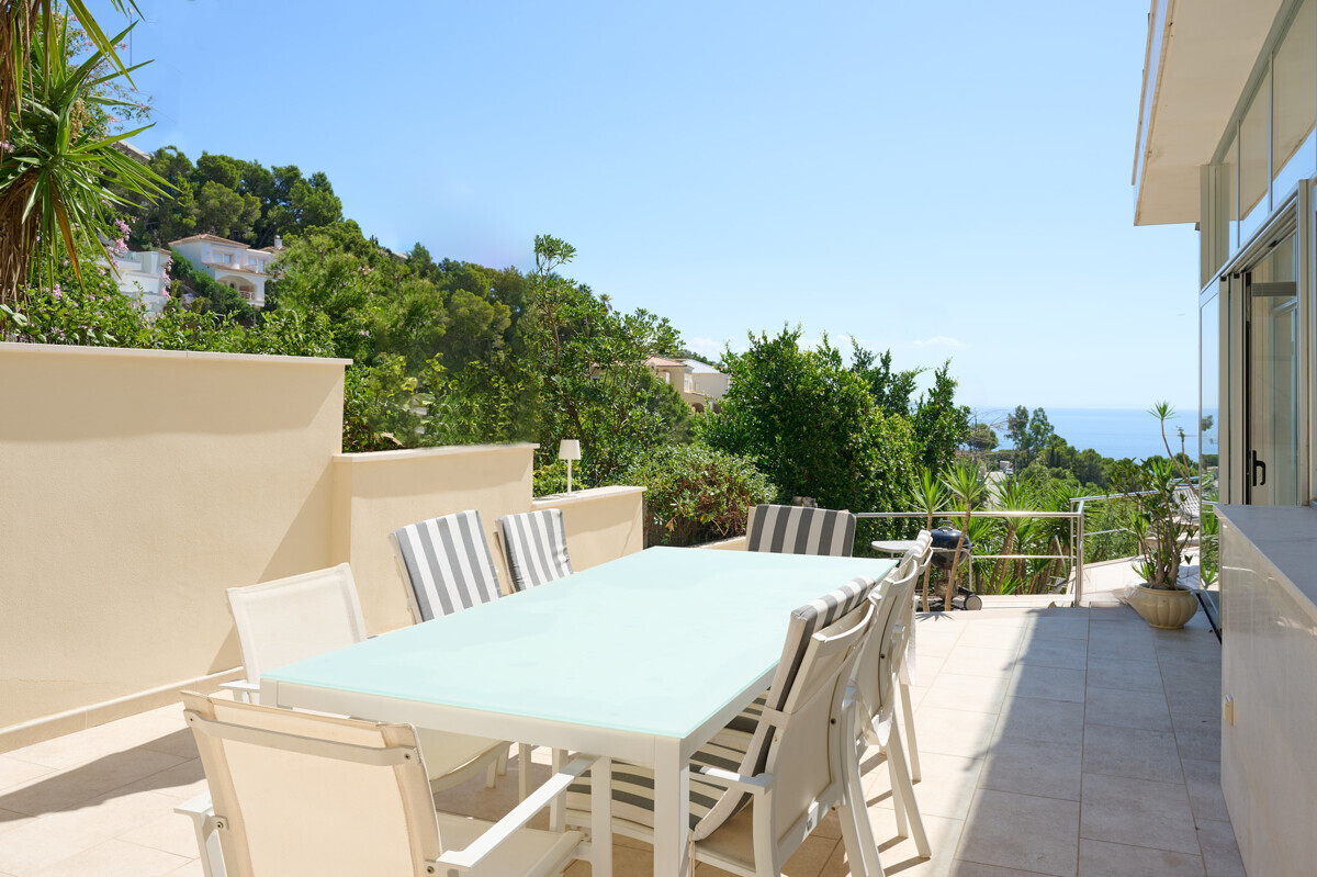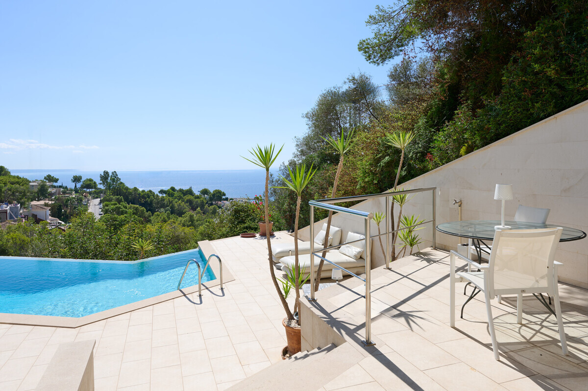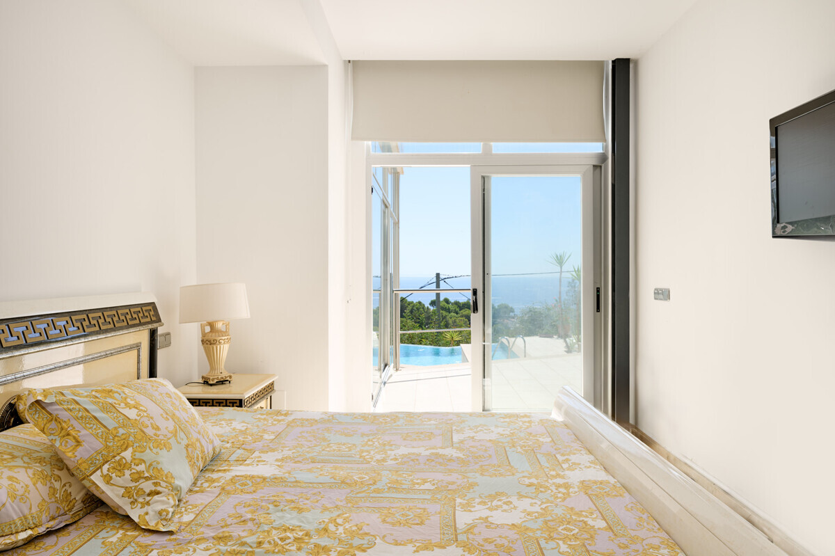 1 master bedroom with dressing room and bathroom en suite, idyllic patio, bright living-dining room, open fully equipped kitchen, access to the terrace, pool area with sun terrace and unique views, beautifully landscaped garden