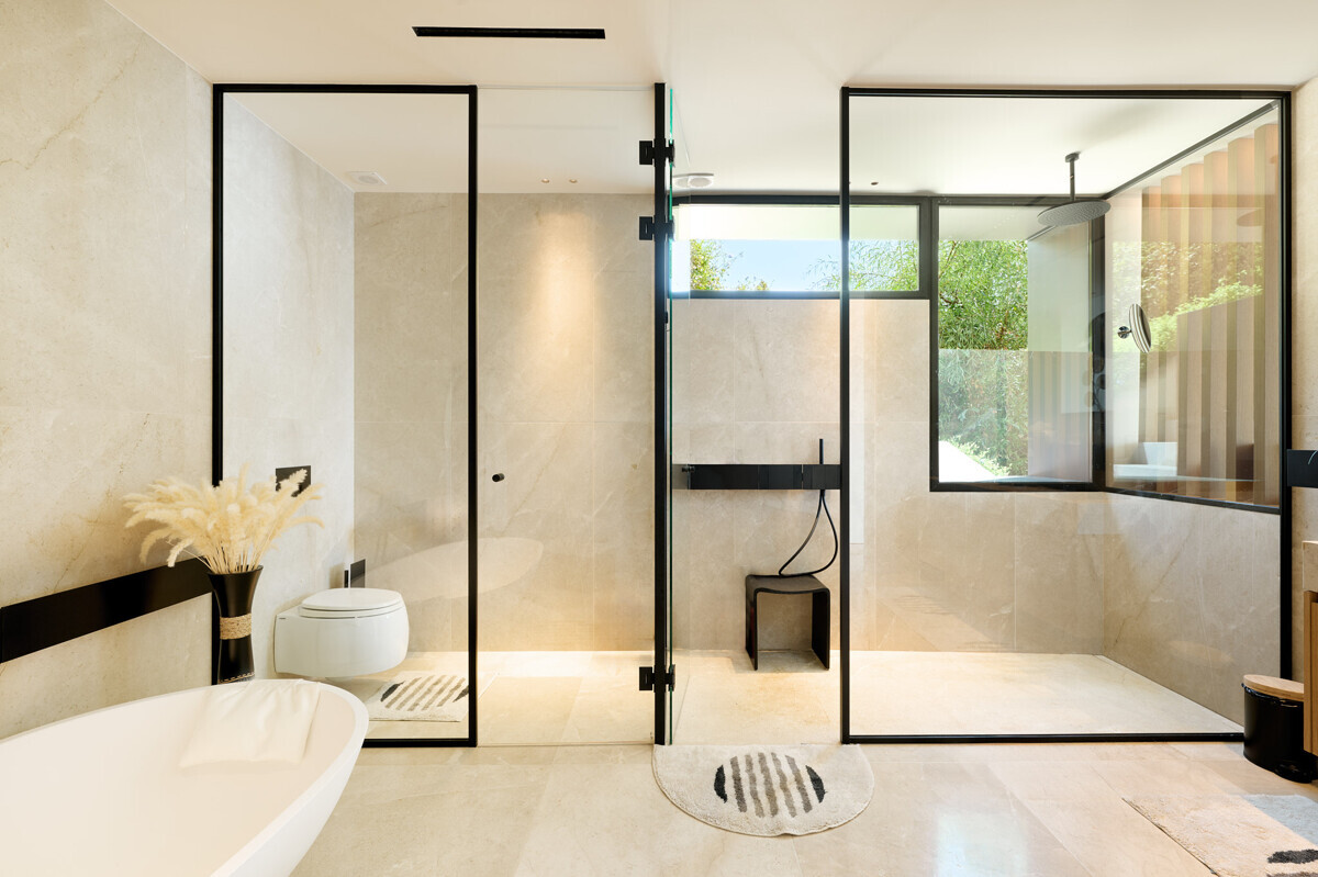 Entrance area, 1 master bedroom with dressing room and bathroom en suite, 3 further bedrooms with bathroom en suite