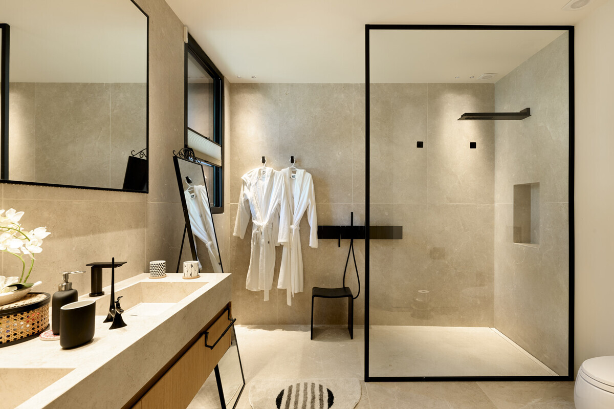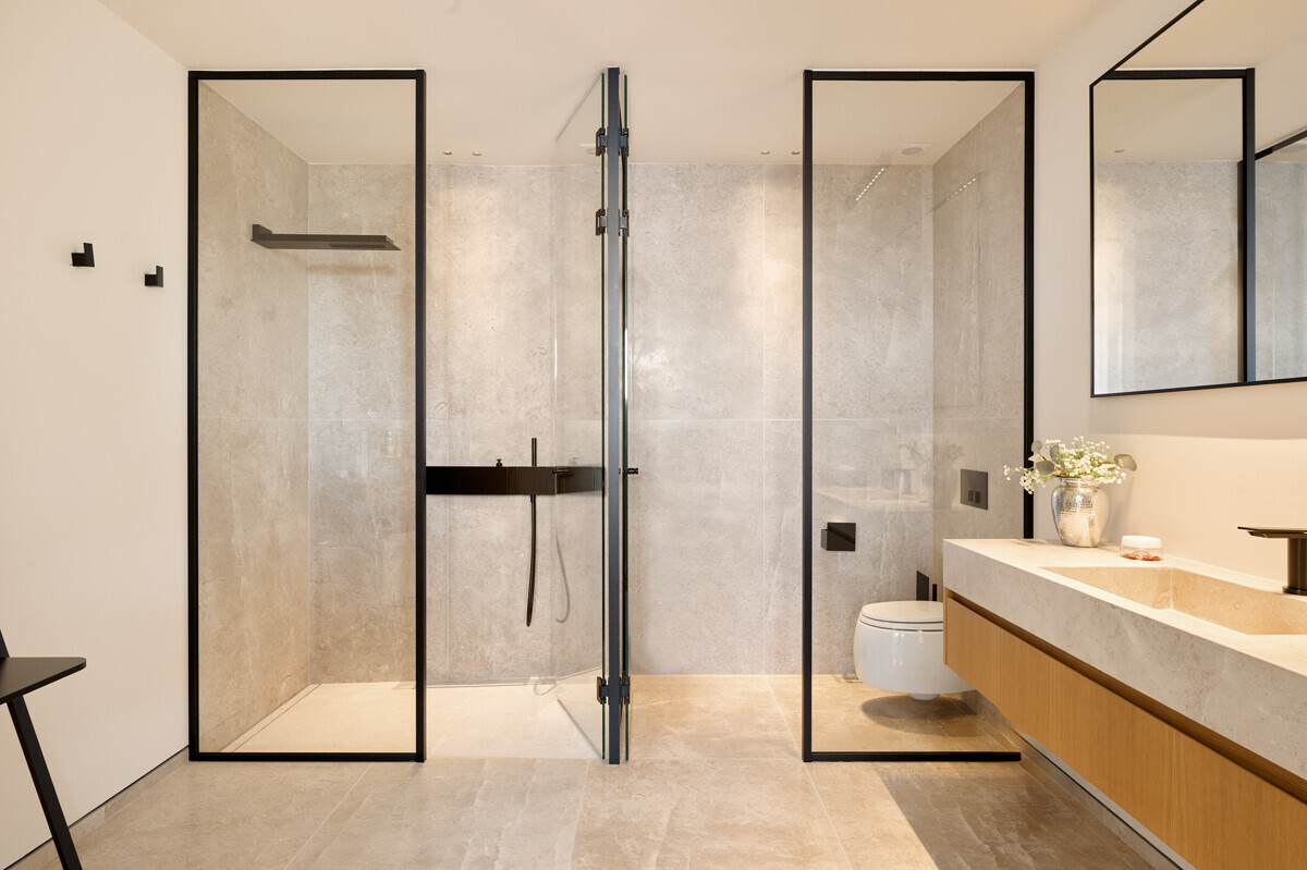 - Floors: Natural stone from Italy - Bianco Avorio