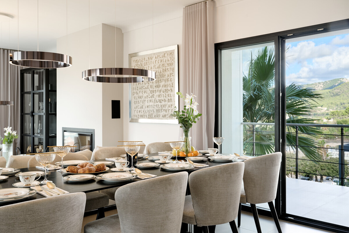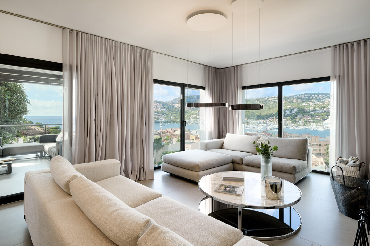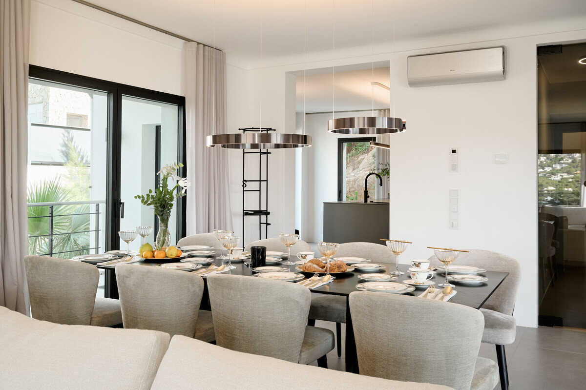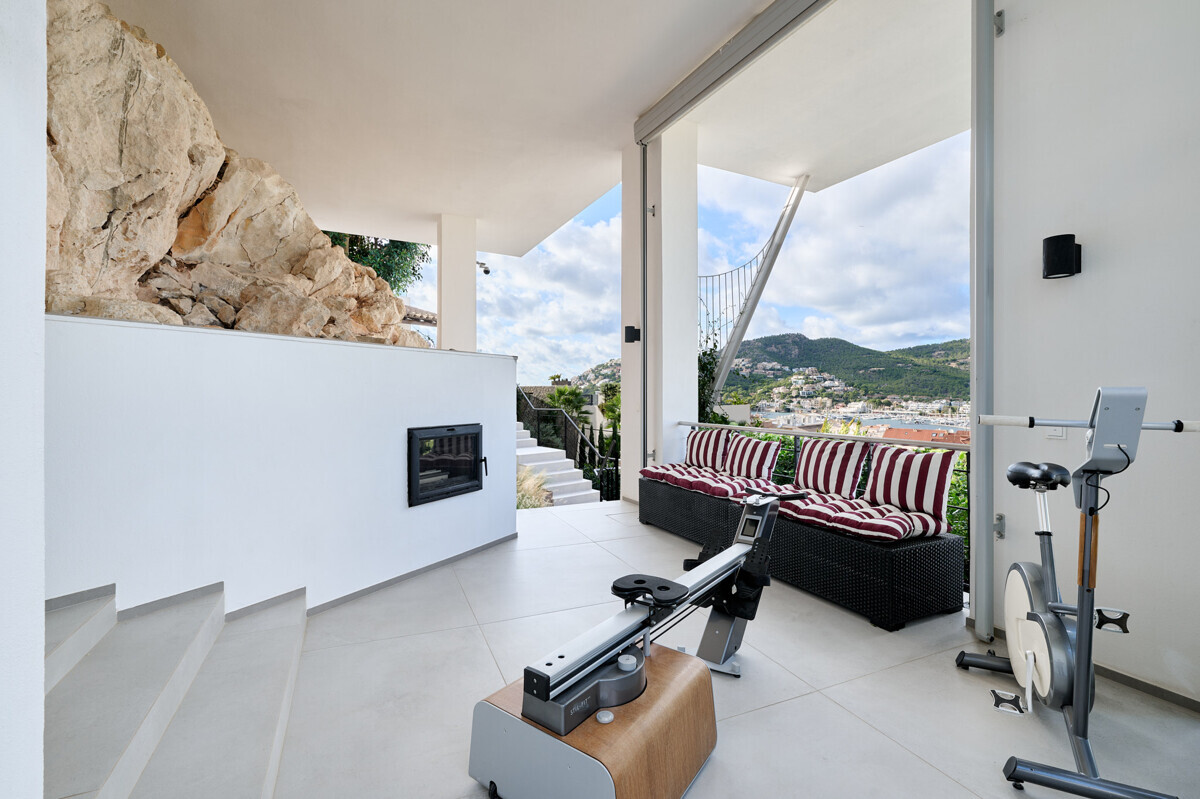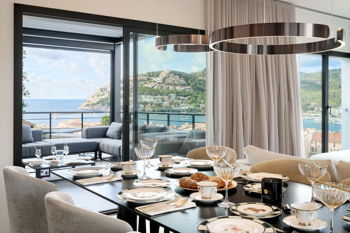 Checkroom, fully equipped designer kitchen with Miele appliances, open-plan living/dining room with fireplace, access to the covered terrace with lounge area and fantastic views, 1 bedroom with en suite bathroom
