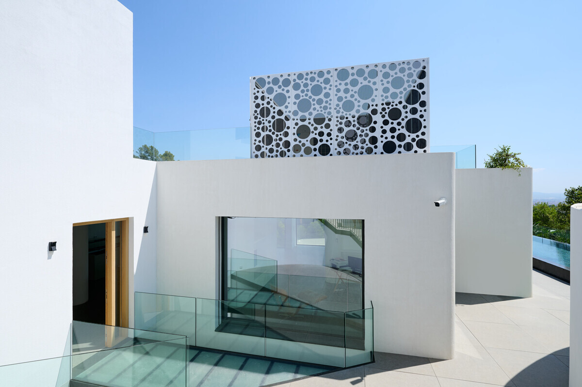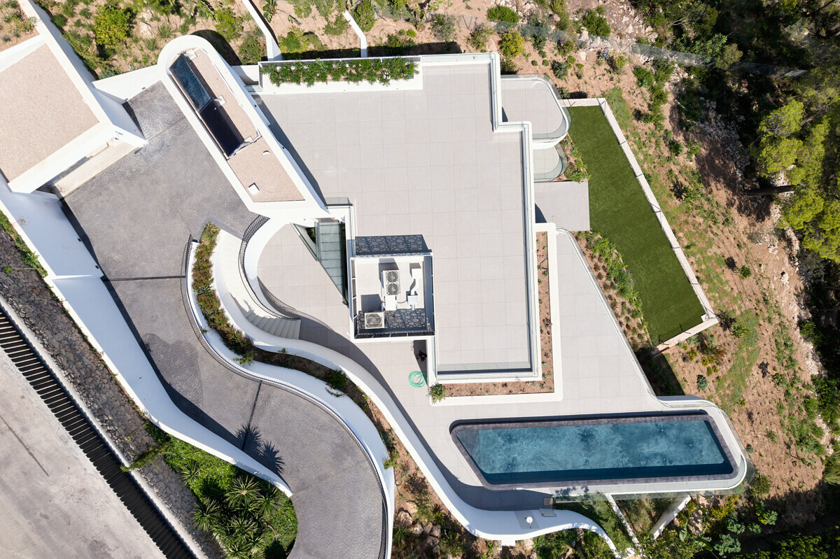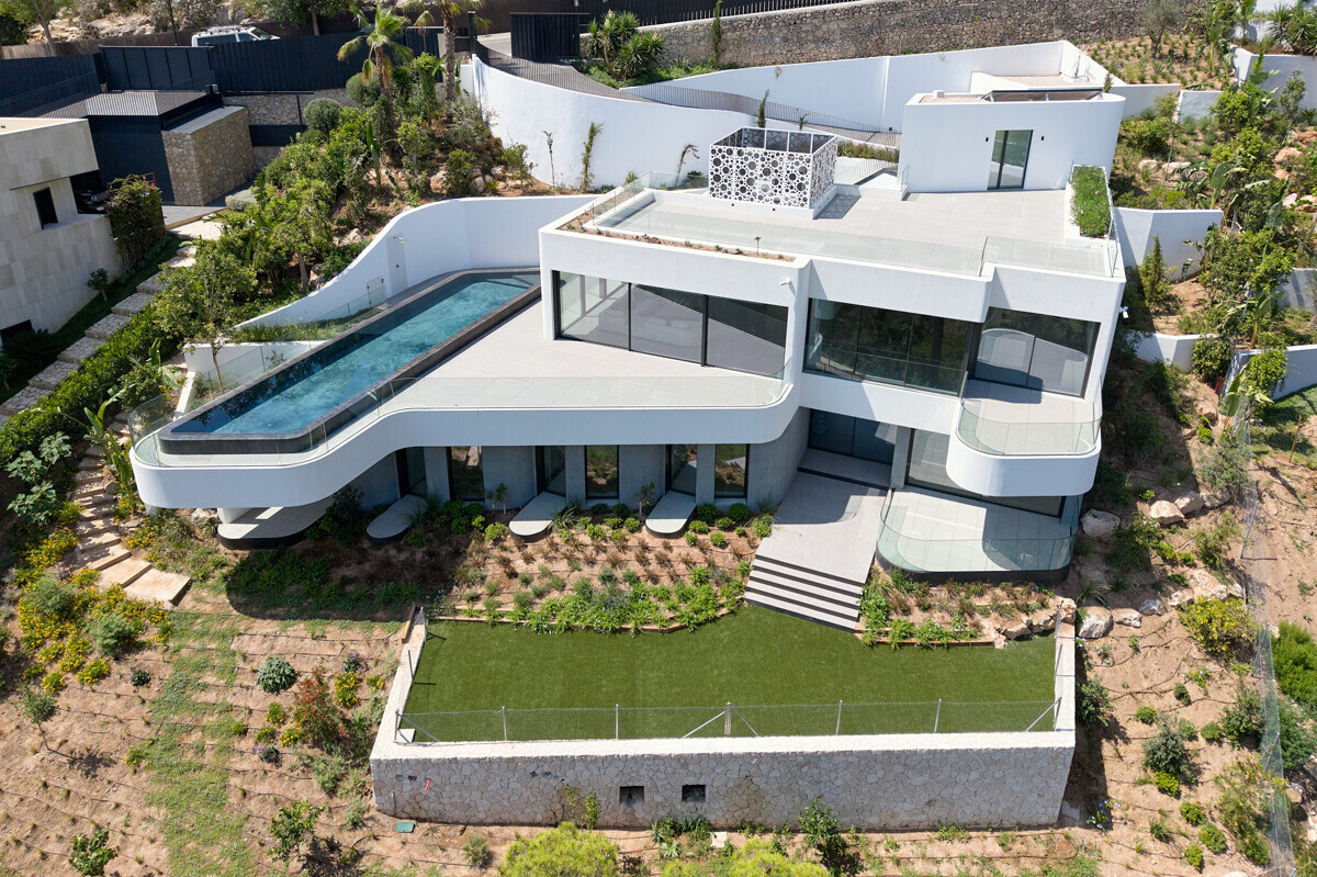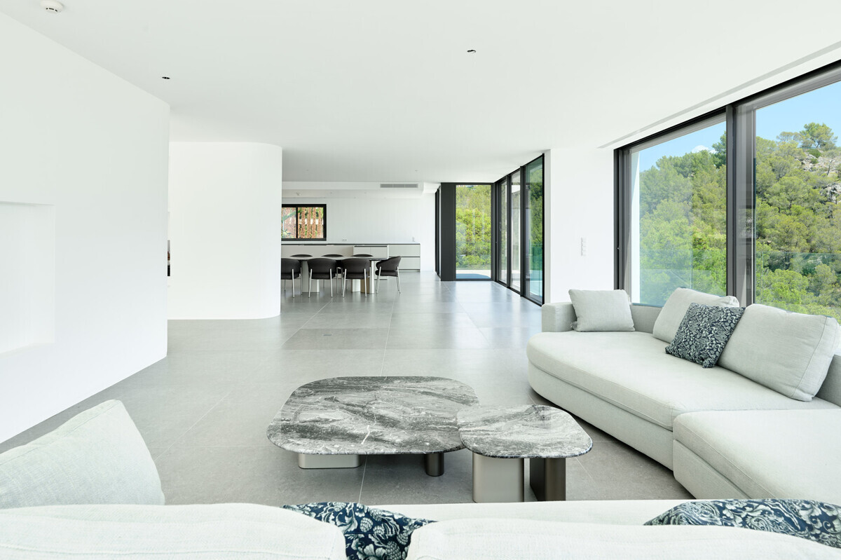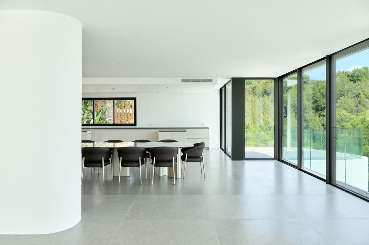 zona de salón-comedor abierta y luminosa con chimenea, cocina totalmente equipada, despensa, despacho, acceso a la terraza, zona de piscina con solarium y fantásticas vistas.