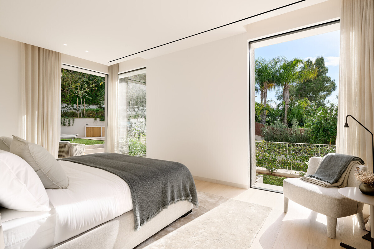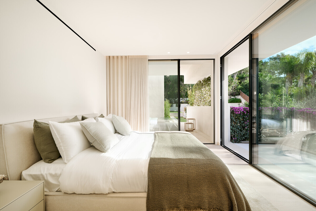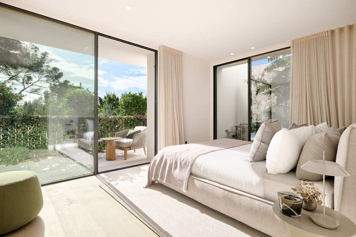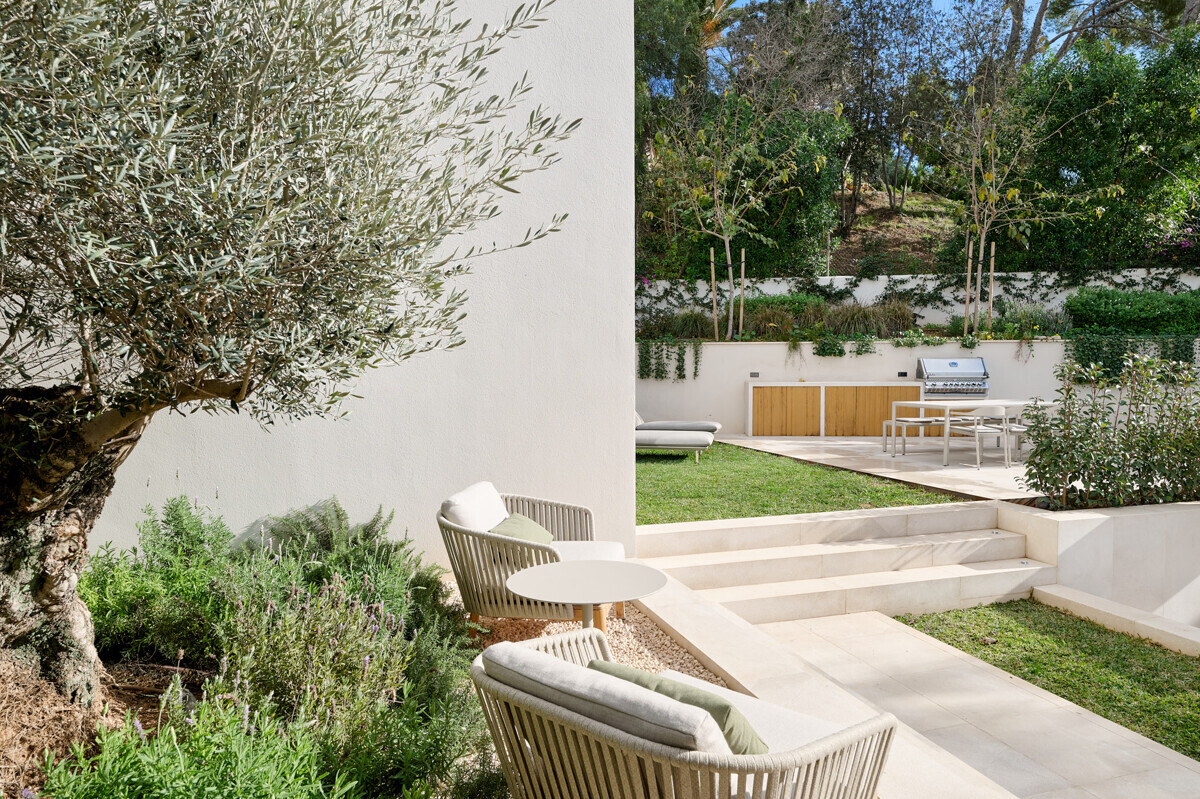 1 dormitorio principal con vestidor y baño en suite, 3 dormitorios más con baño en suite, acceso al precioso jardín mediterráneo, zona de estar, zona de piscina con cocina exterior y barbacoa.