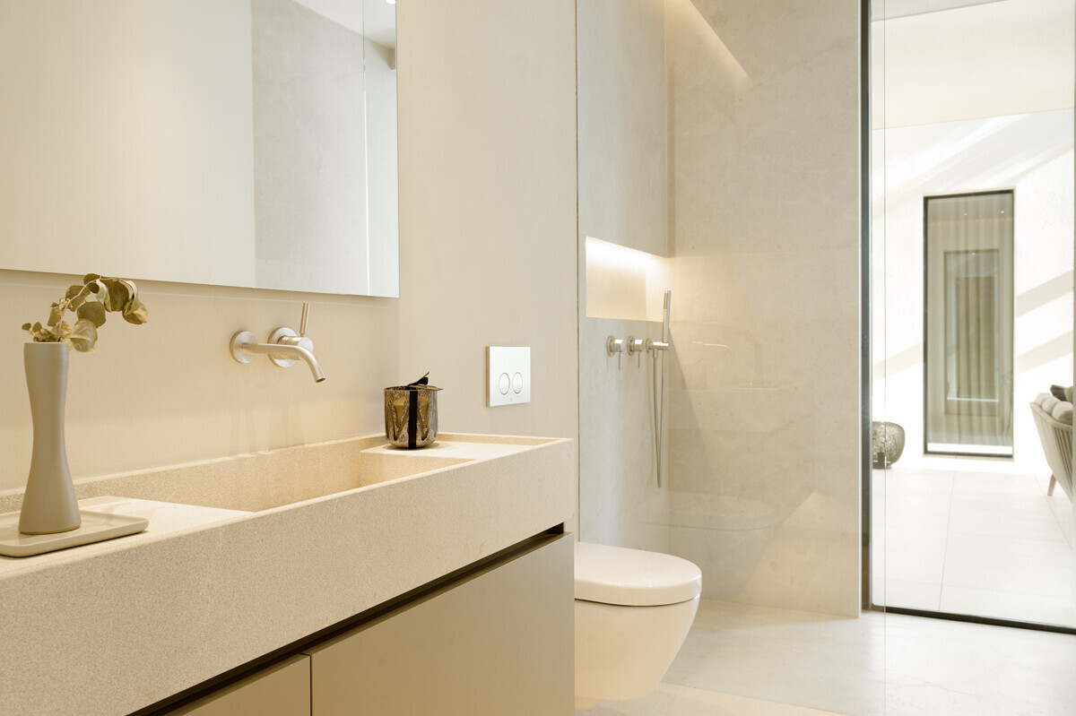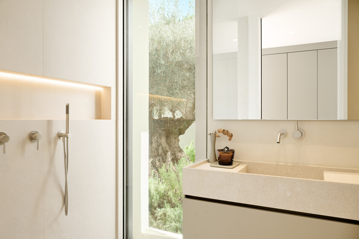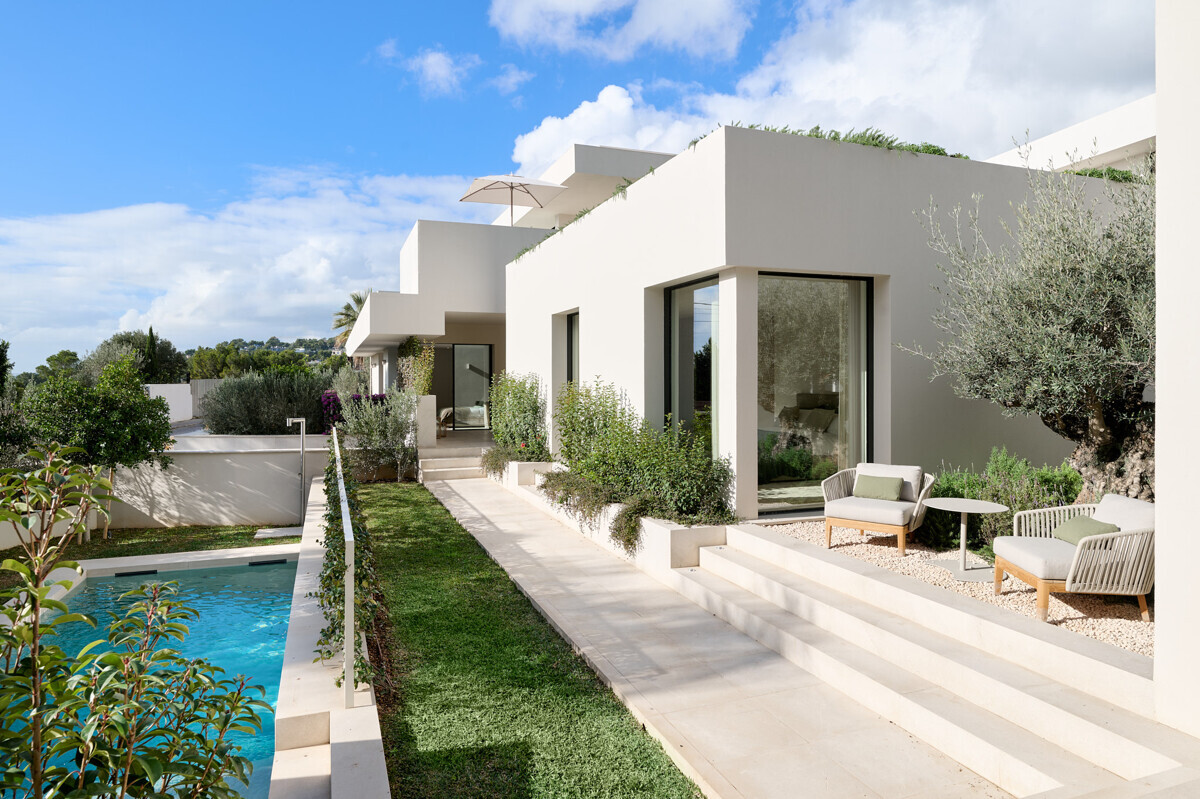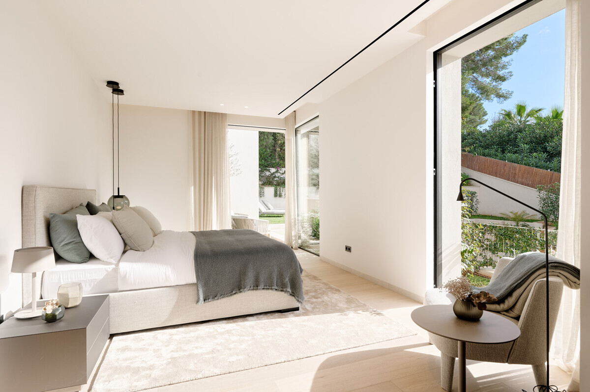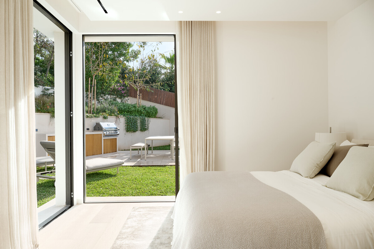 1 dormitorio principal con vestidor y baño en suite, 3 dormitorios más con baño en suite, acceso al precioso jardín mediterráneo, zona de estar, zona de piscina con cocina exterior y barbacoa.