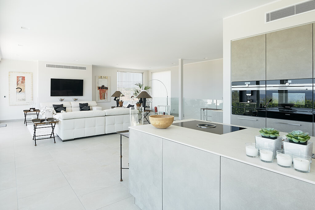 Salón con cocina abierta Nolte con Bora, 1 dormitorio con baño, gran terraza