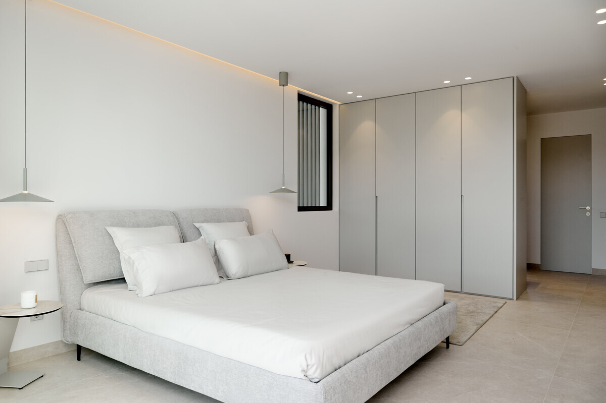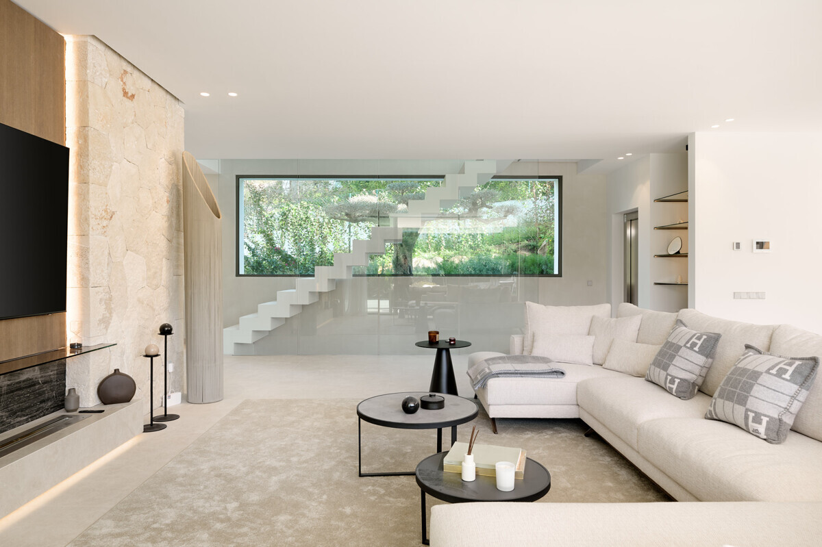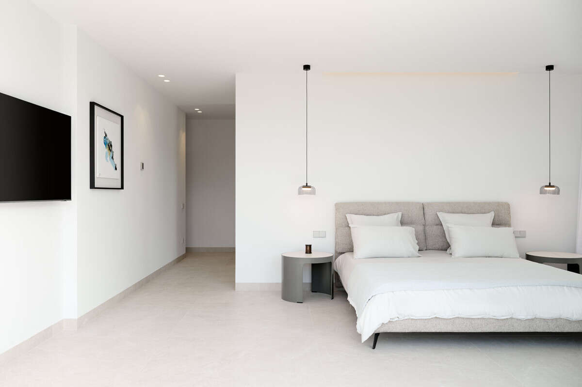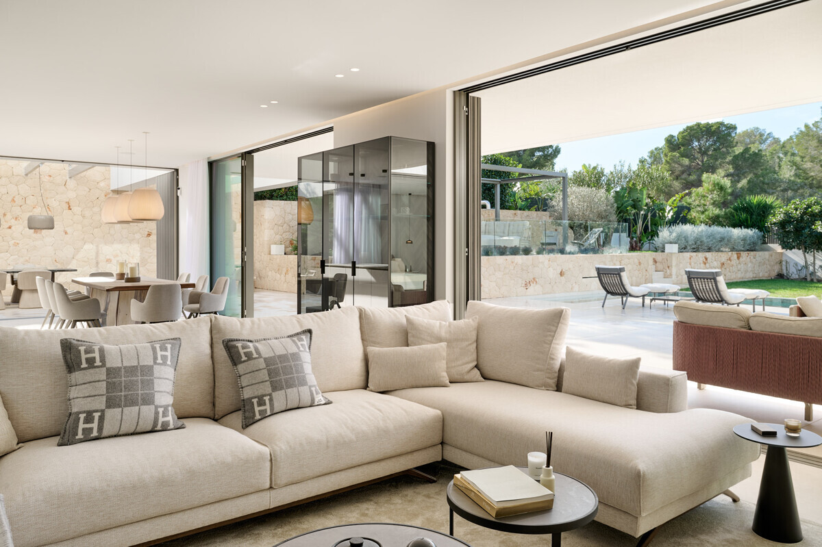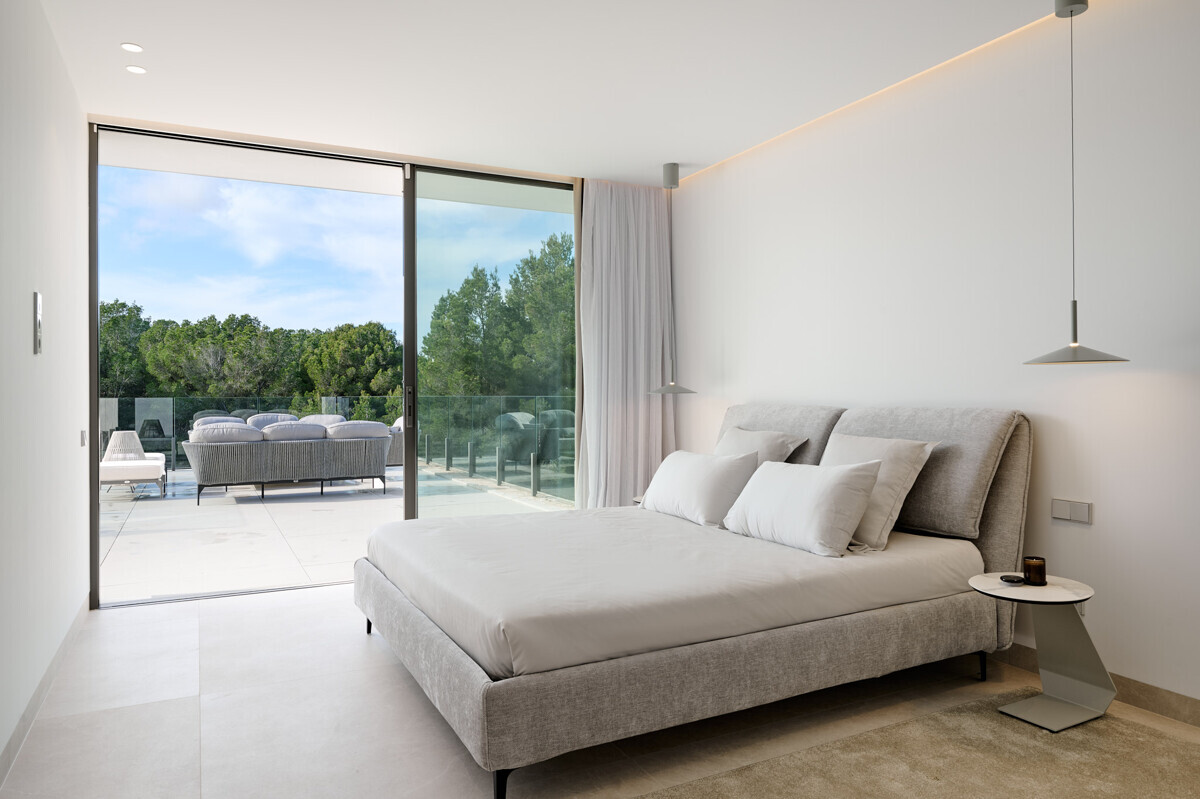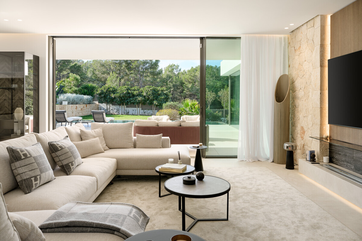 salón-comedor amplio y diáfano, cocina de diseño totalmente equipada con electrodomésticos Miele, cocina de preparación, aseo de invitados, 1 dormitorio principal con vestidor y baño en suite, acceso a la terraza cubierta, zona de estar, zona de piscina con terraza solárium, bonito jardín paisajístico.