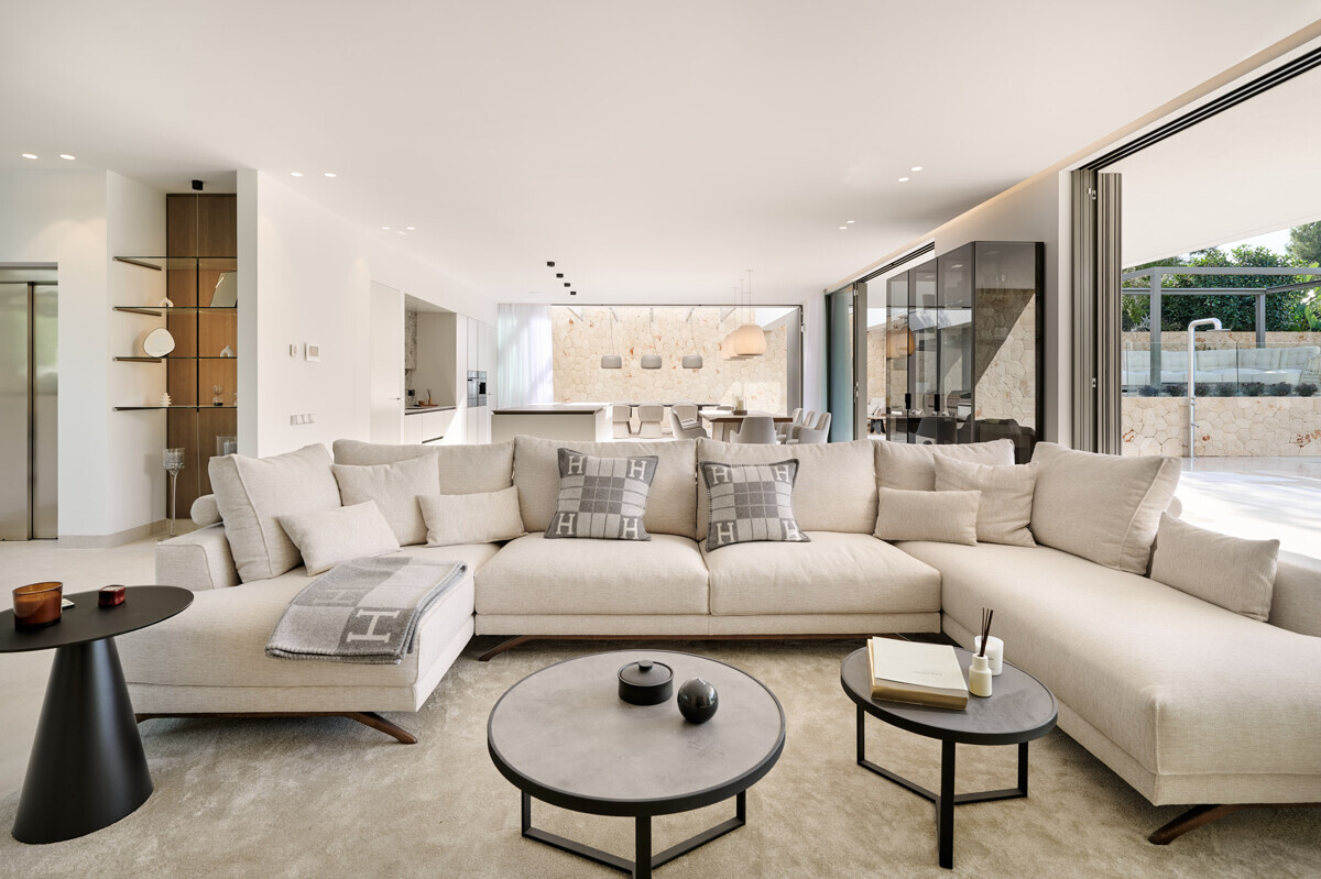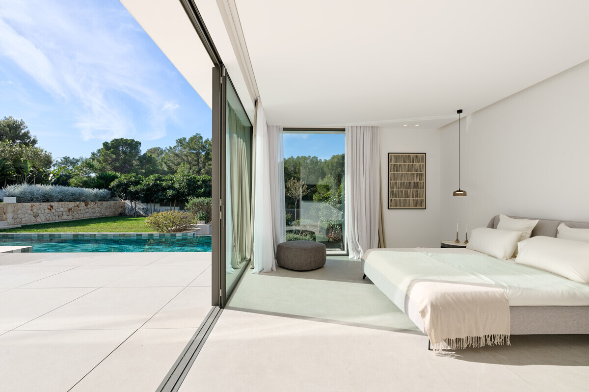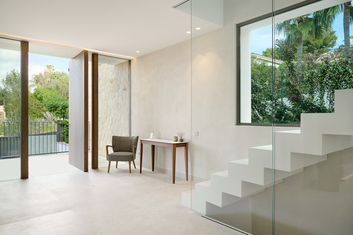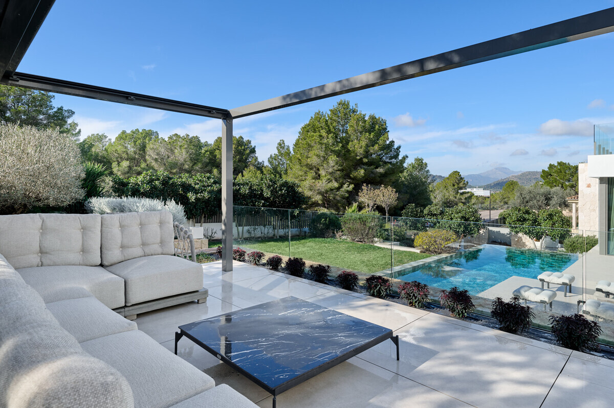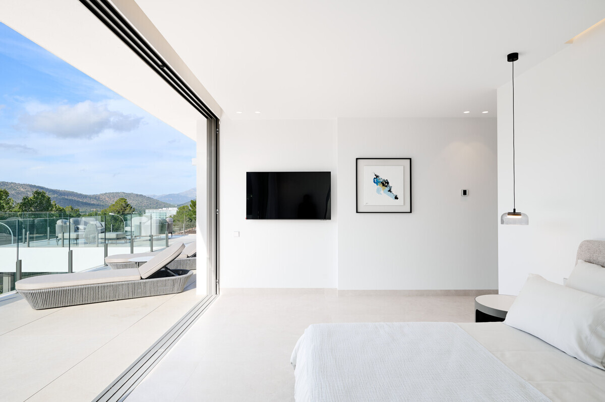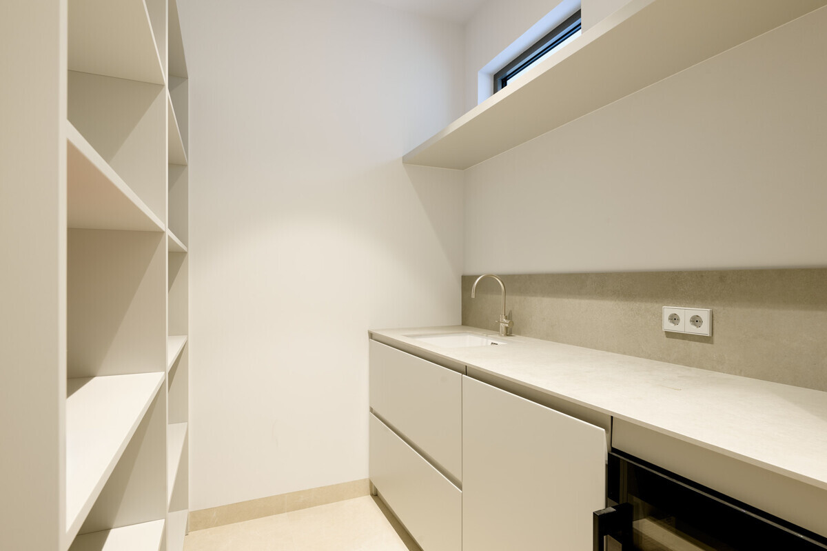 salón-comedor amplio y diáfano, cocina de diseño totalmente equipada con electrodomésticos Miele, cocina de preparación, aseo de invitados, 1 dormitorio principal con vestidor y baño en suite, acceso a la terraza cubierta, zona de estar, zona de piscina con terraza solárium, bonito jardín paisajístico.