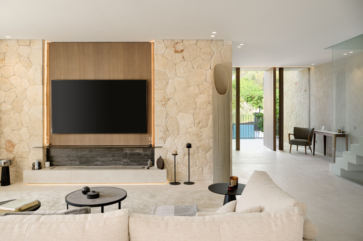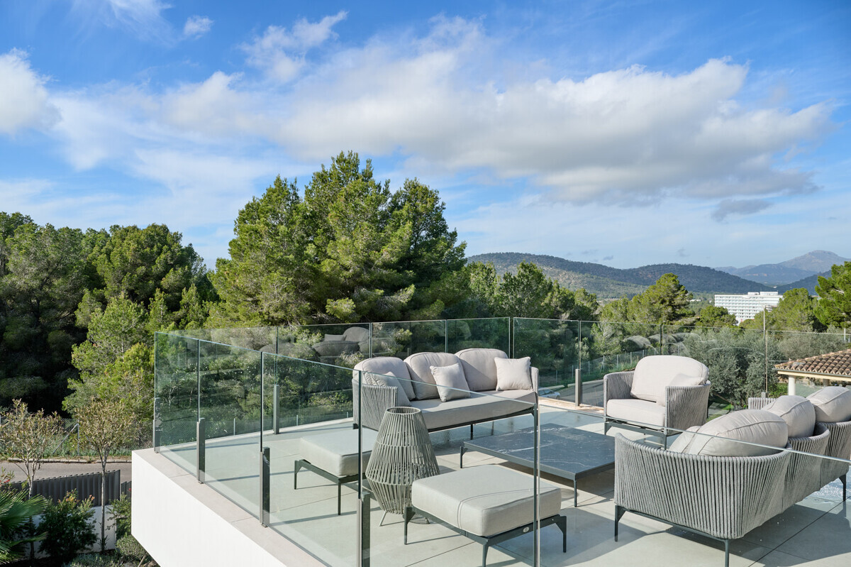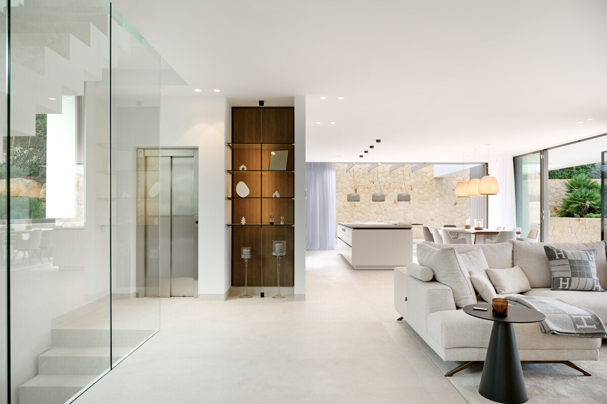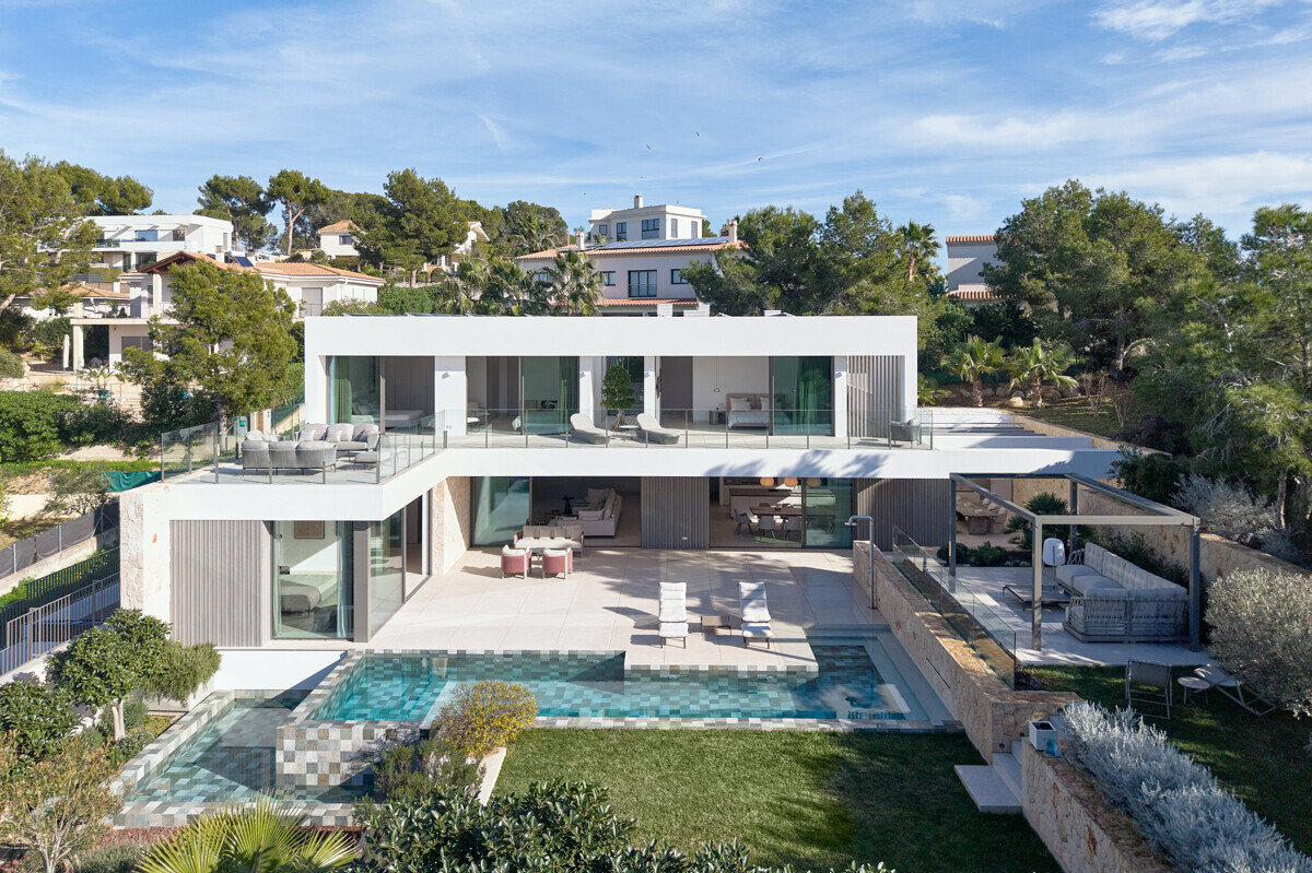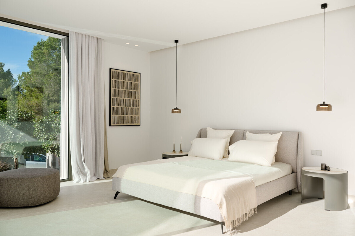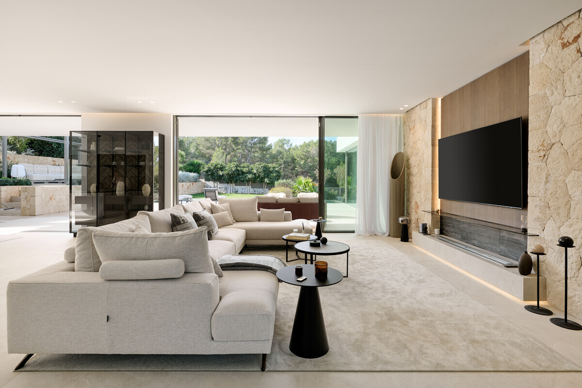 salón-comedor amplio y diáfano, cocina de diseño totalmente equipada con electrodomésticos Miele, cocina de preparación, aseo de invitados, 1 dormitorio principal con vestidor y baño en suite, acceso a la terraza cubierta, zona de estar, zona de piscina con terraza solárium, bonito jardín paisajístico.