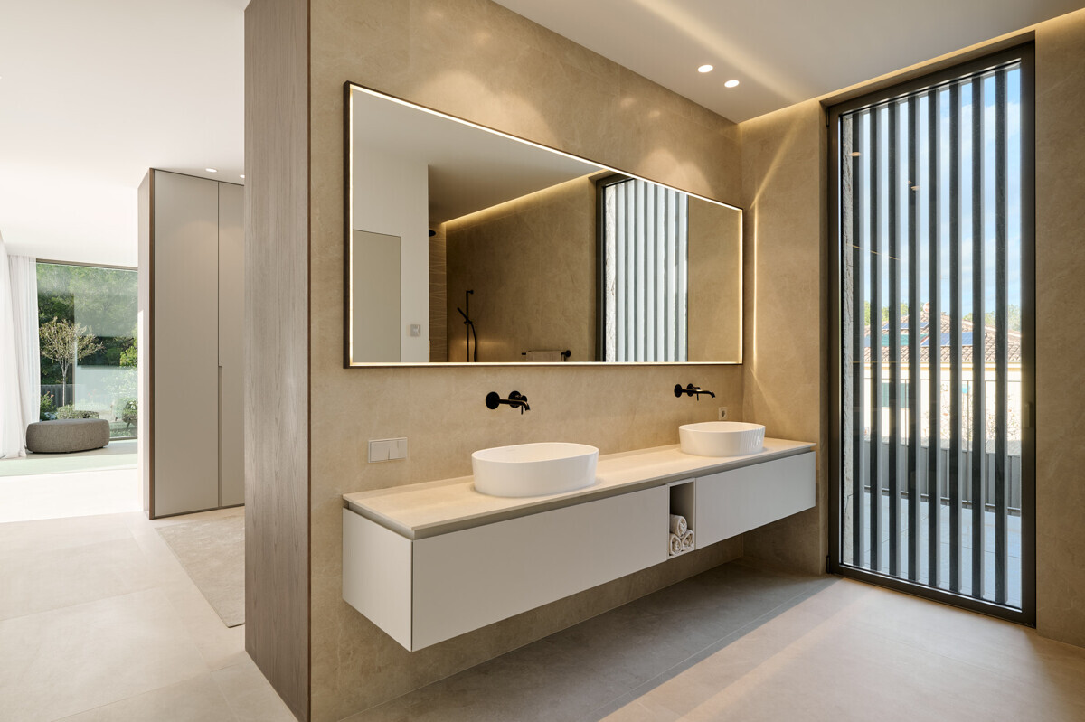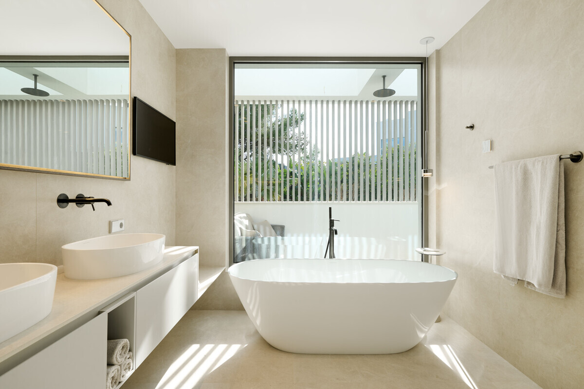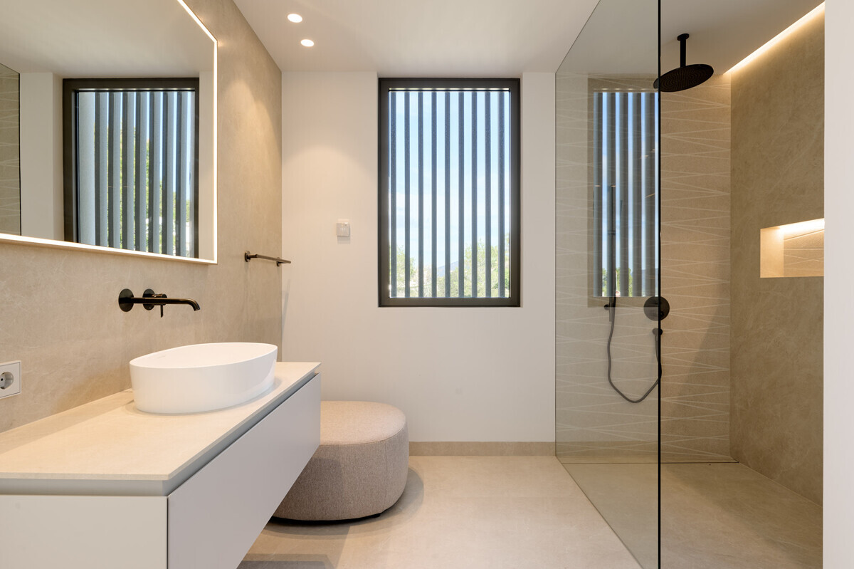 1 dormitorio principal con vestidor y baño en suite y ducha exterior, 2 dormitorios con baños en suite - todos con acceso a la terraza