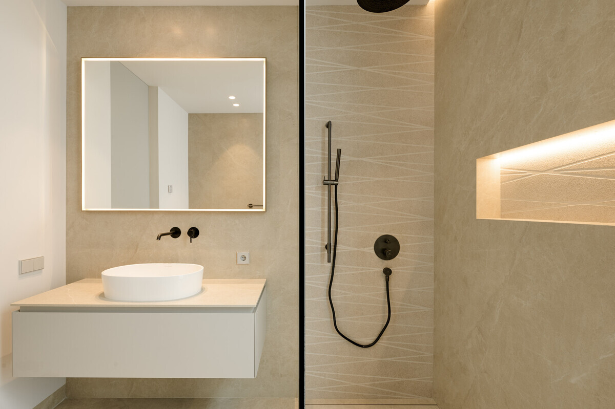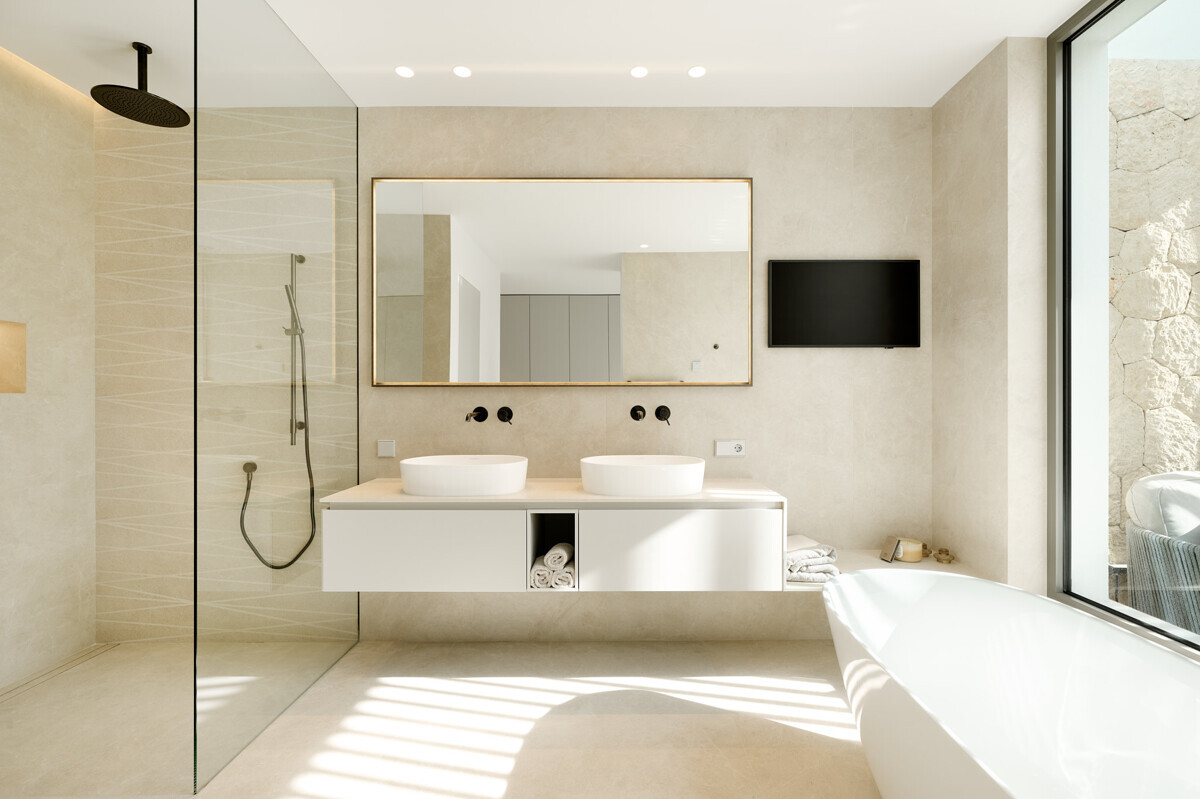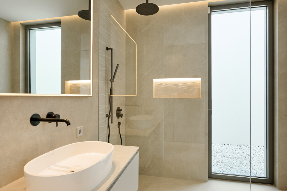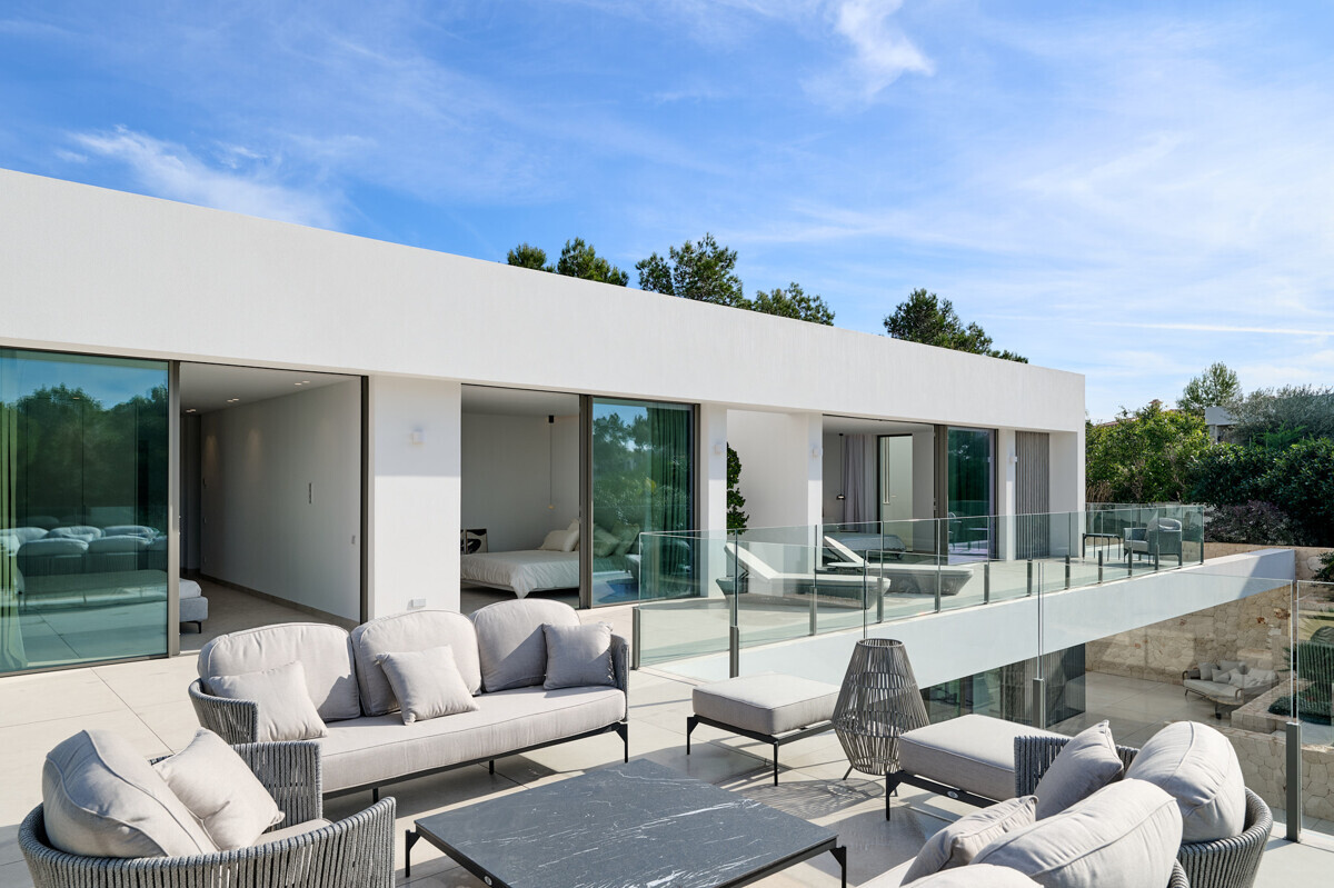 1 dormitorio principal con vestidor y baño en suite y ducha exterior, 2 dormitorios con baños en suite - todos con acceso a la terraza