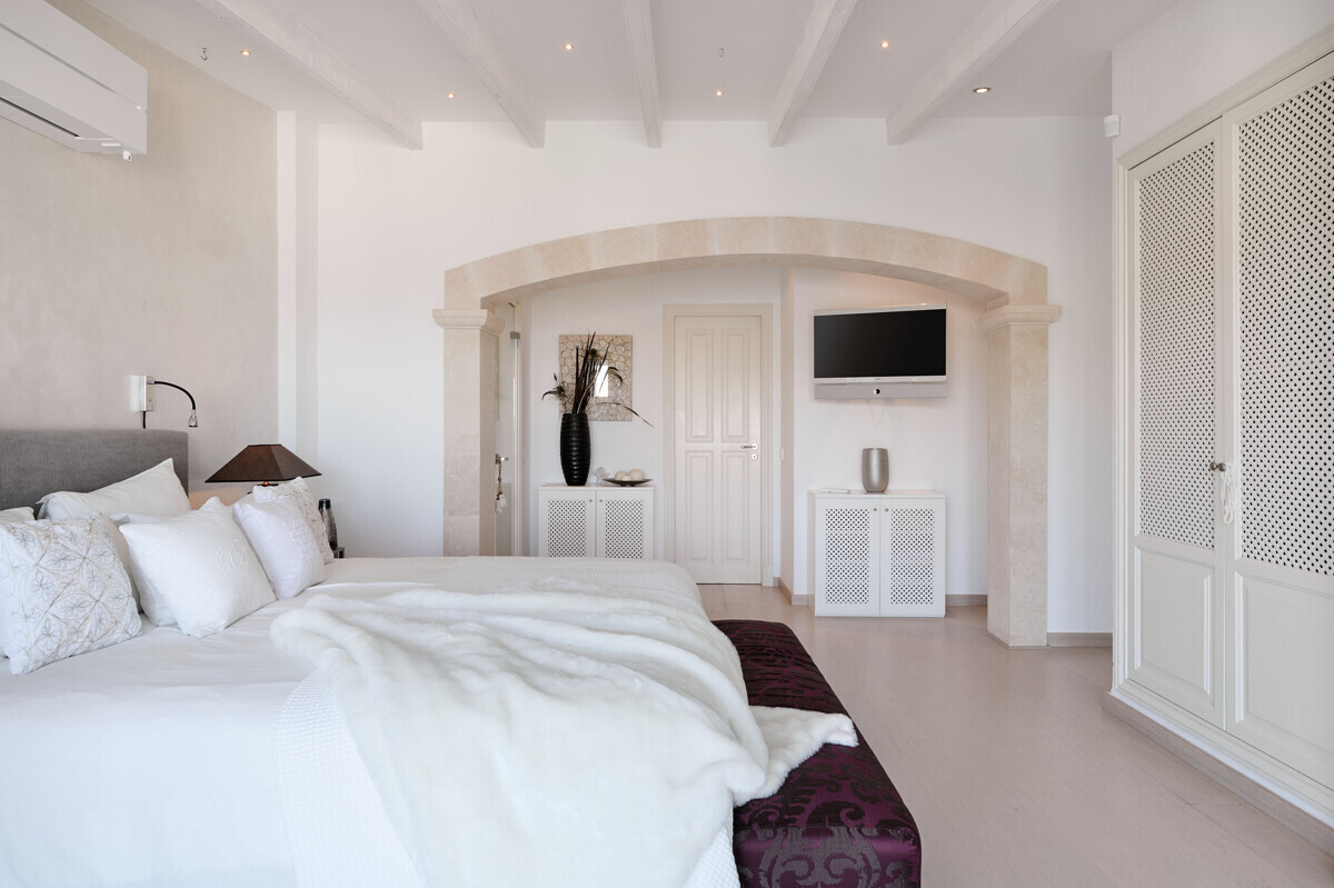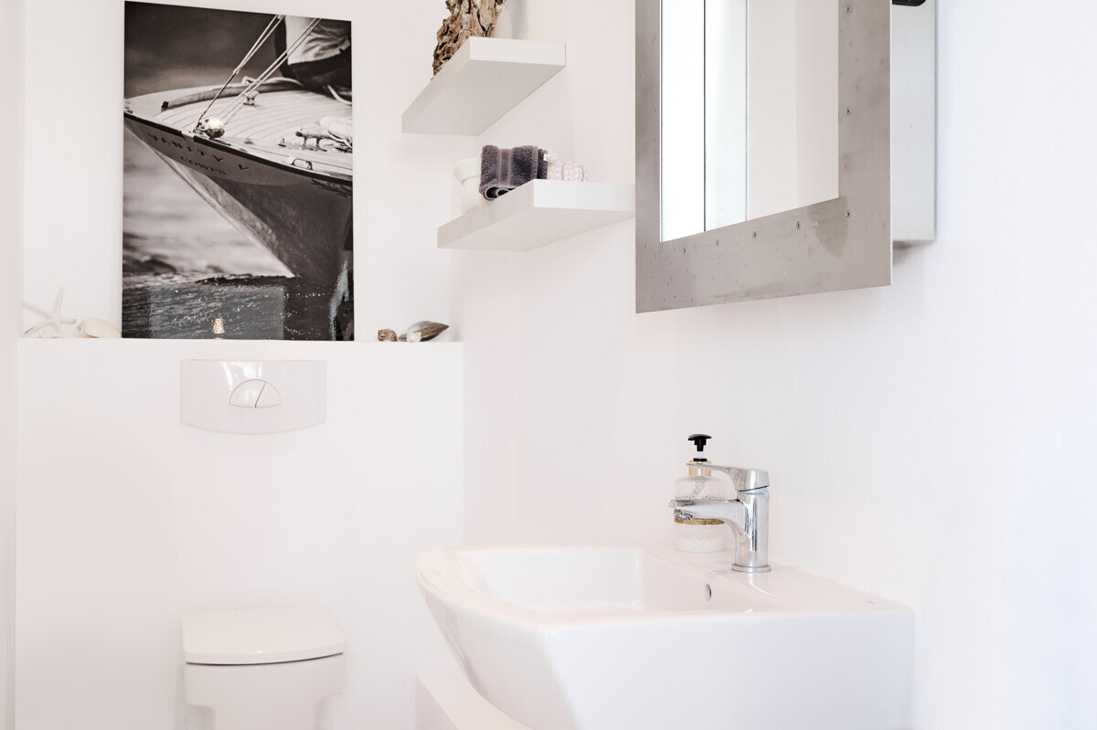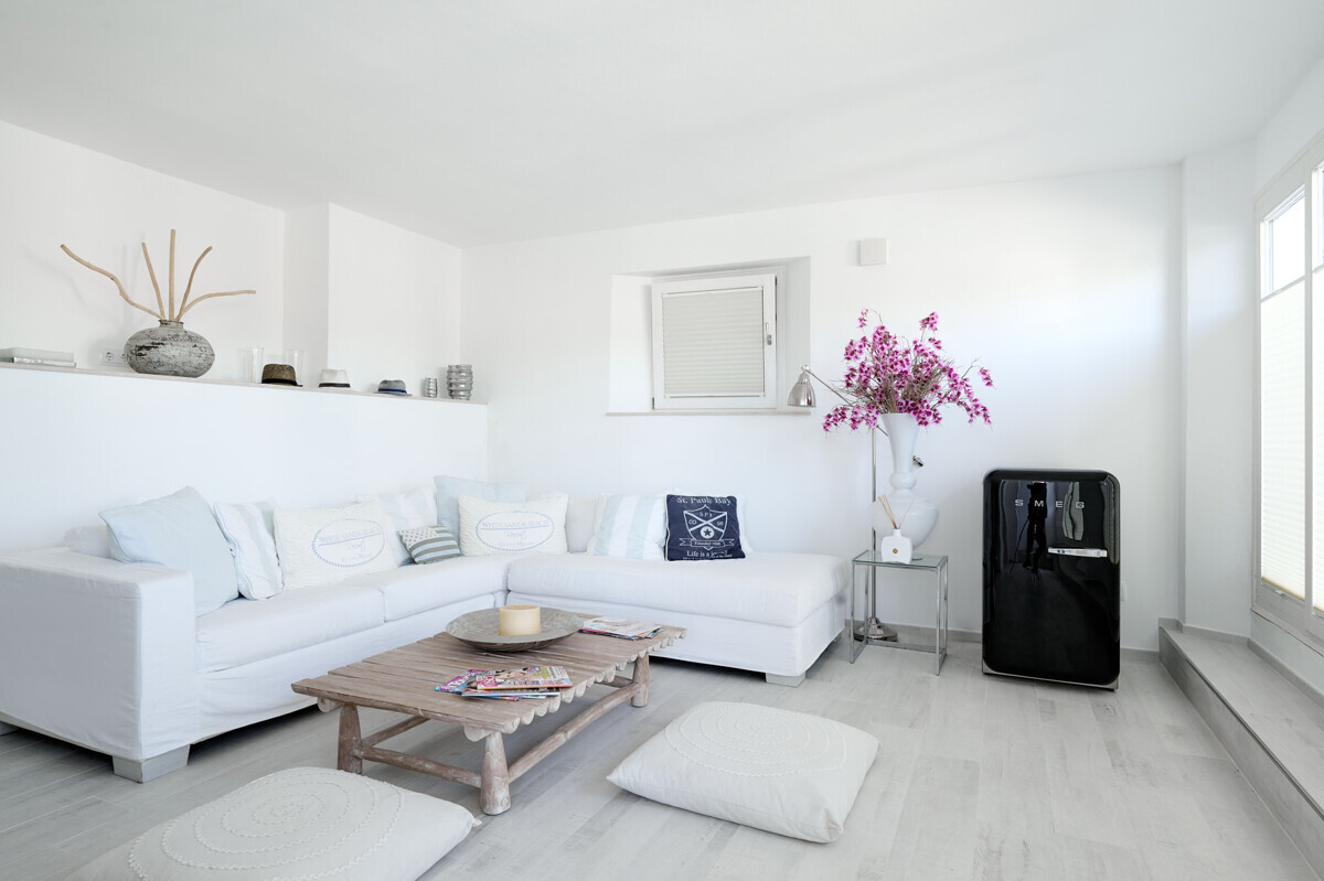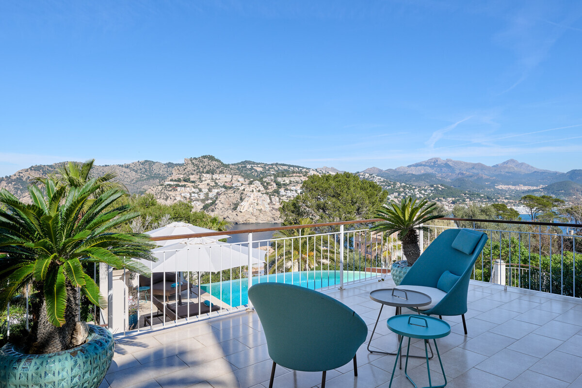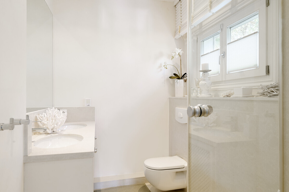 Salón comedor diáfano con chimenea, 1 dormitorio con baño en suite, aseo de invitados, cocina totalmente equipada con electrodomésticos Miele, acceso a la terraza cubierta y zona de piscina con solárium, barbacoa, casita de piscina con zona de estar.