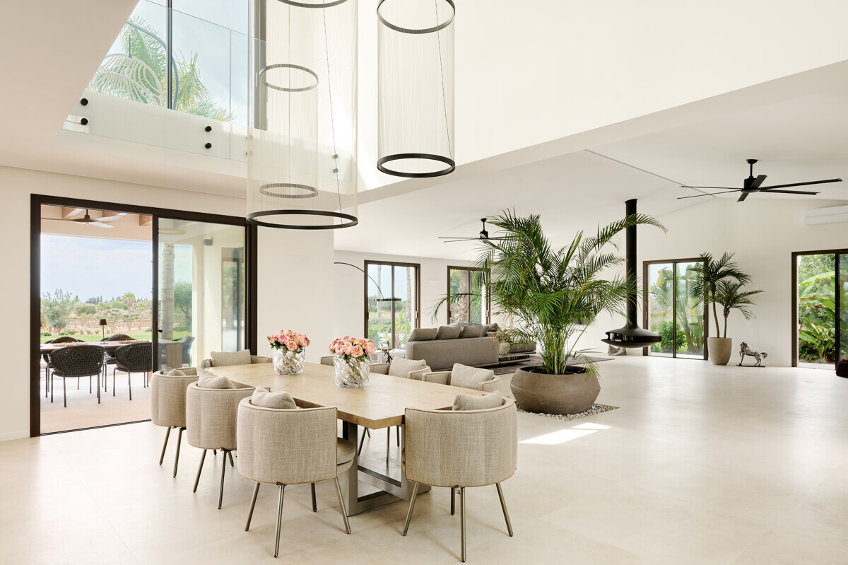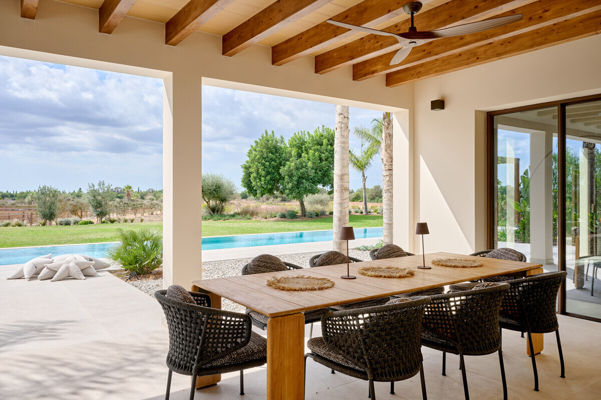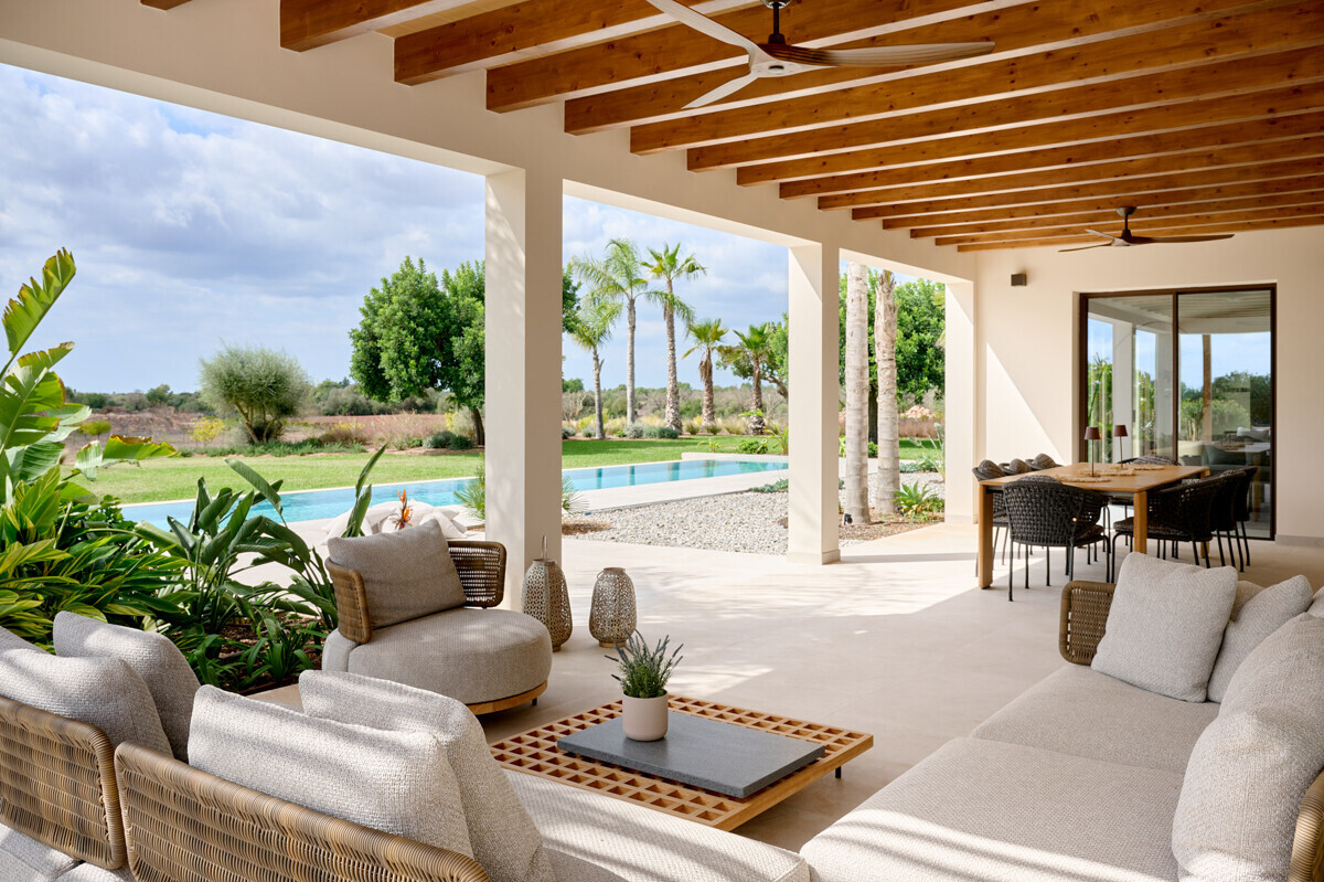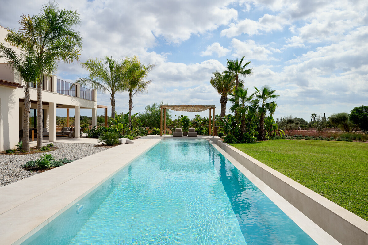 Luminosa zona de entrada, amplio salón-comedor, cocina totalmente equipada, lavadero, 2 dormitorios y 1 baño, lavadero, aseo de invitados, despacho, acceso a la terraza cubierta, zona de piscina con zona de estar y bonito jardín,