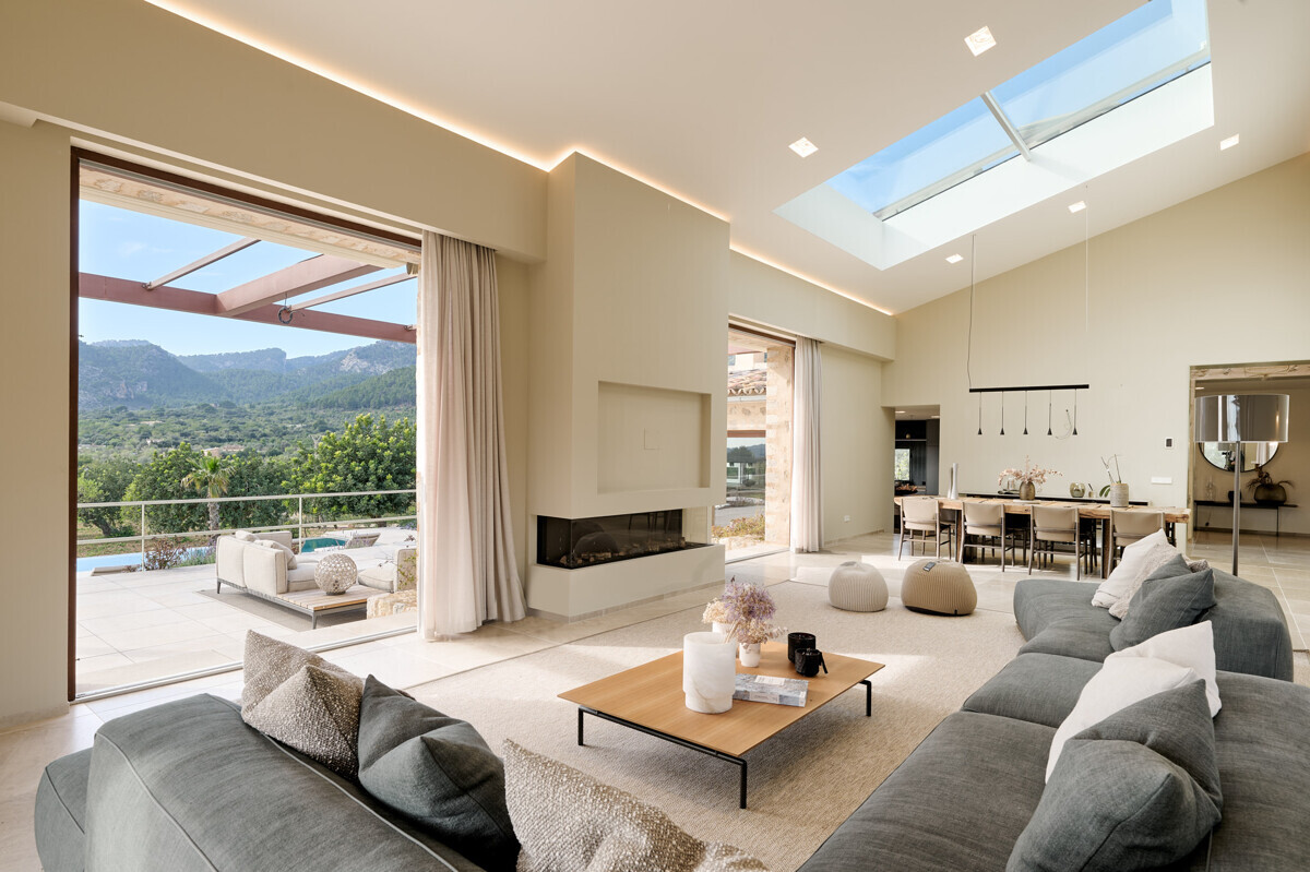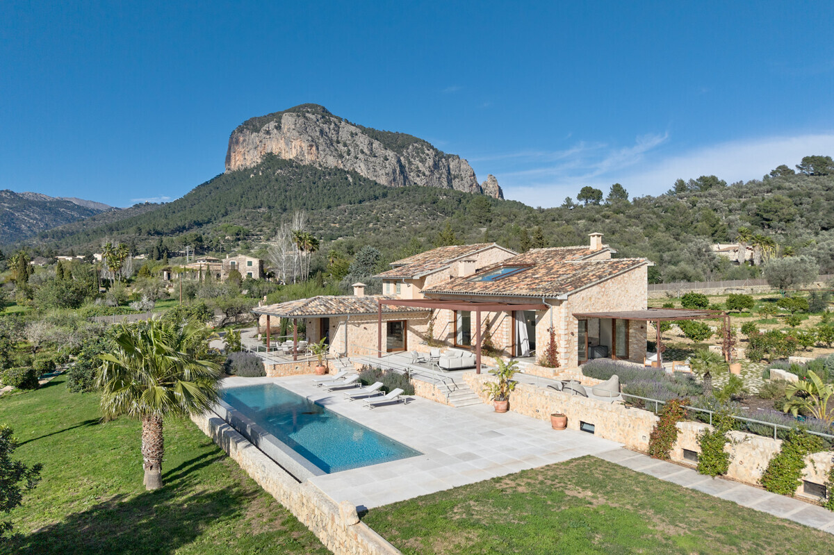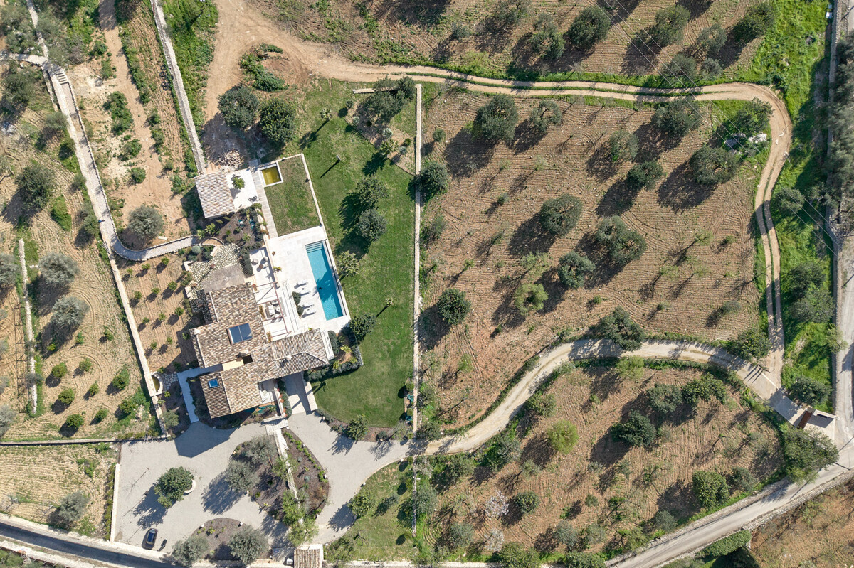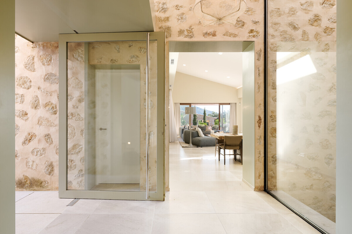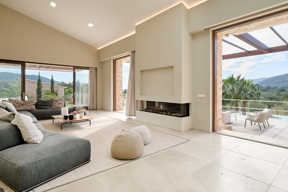 luminosa zona de entrada, cocina abierta totalmente equipada con electrodomésticos Gaggenau y zona de comedor, salón-comedor abierto con chimenea, 1 dormitorio con baño en suite, 1 dormitorio con vestidor y baño en suite, acceso a la terraza con piscina, jacuzzi, barbacoa, amplio jardín mediterráneo bellamente ajardinado con olivos y árboles frutales.