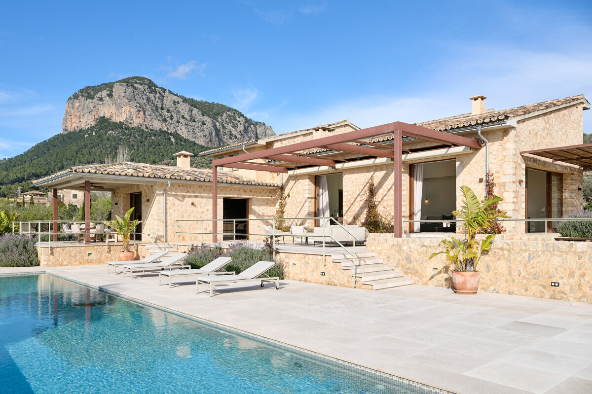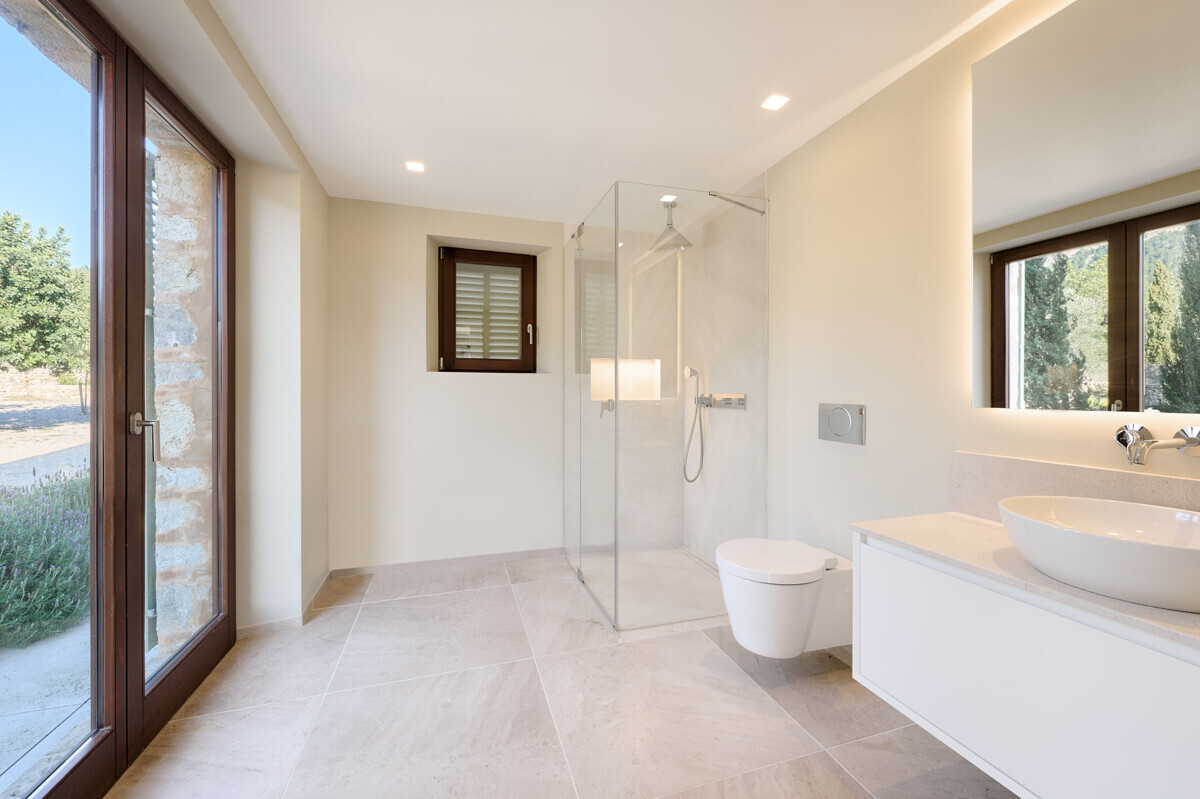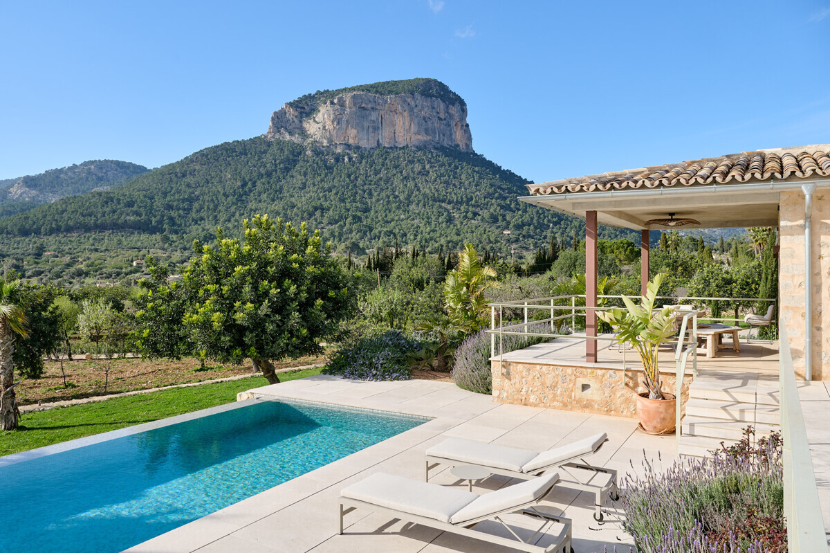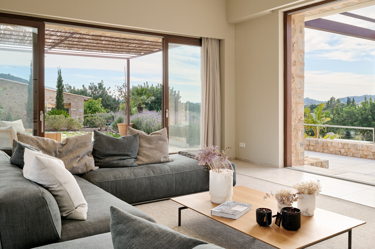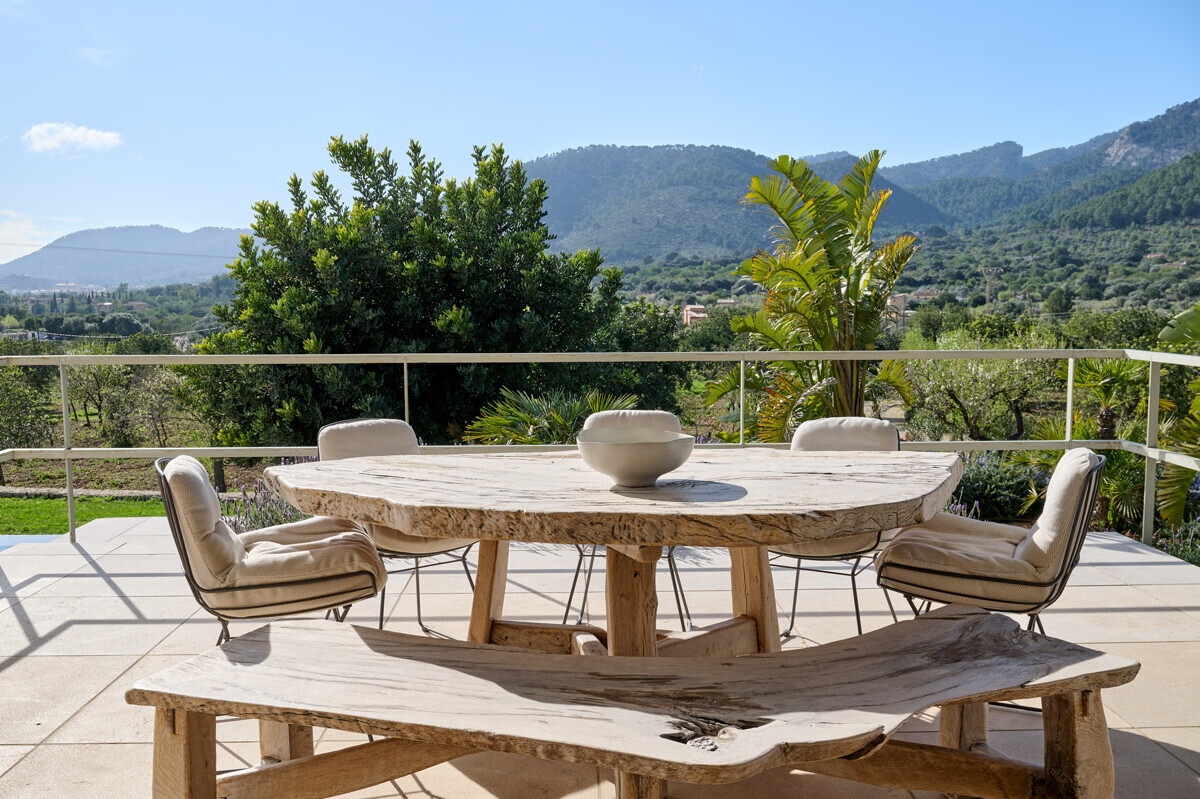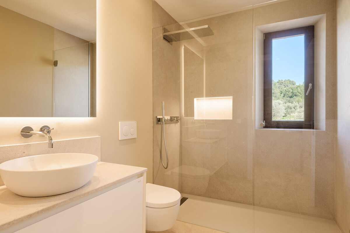 luminosa zona de entrada, cocina abierta totalmente equipada con electrodomésticos Gaggenau y zona de comedor, salón-comedor abierto con chimenea, 1 dormitorio con baño en suite, 1 dormitorio con vestidor y baño en suite, acceso a la terraza con piscina, jacuzzi, barbacoa, amplio jardín mediterráneo bellamente ajardinado con olivos y árboles frutales.