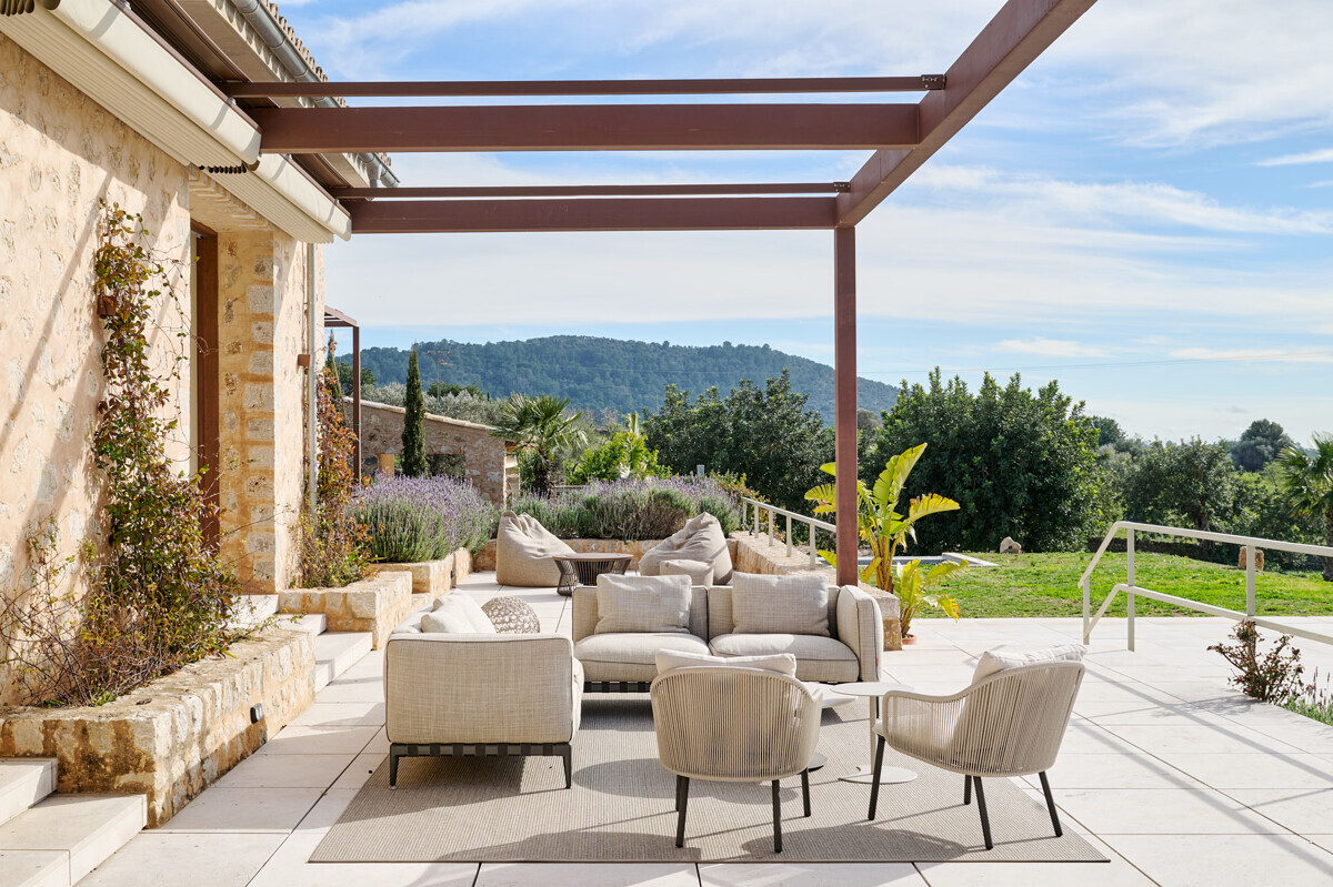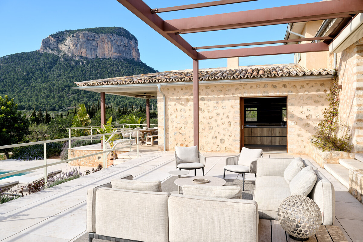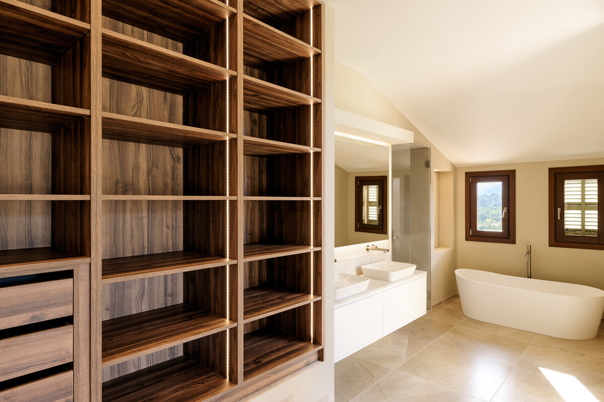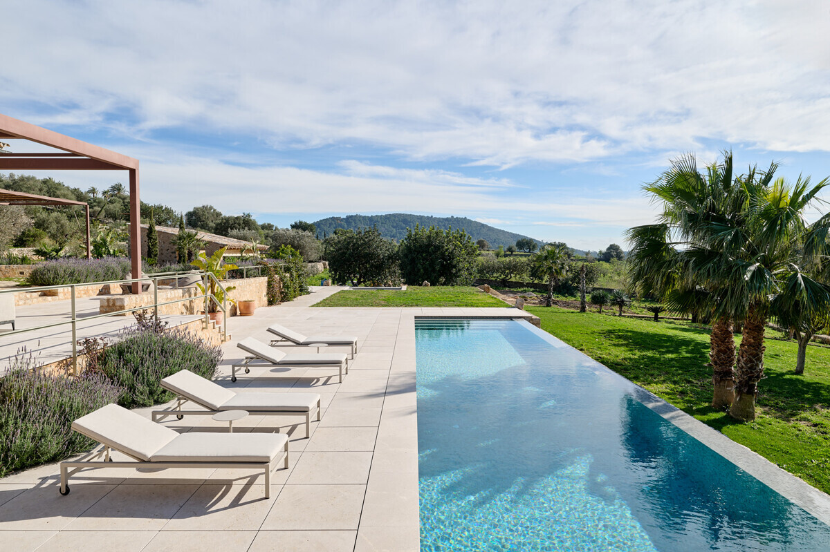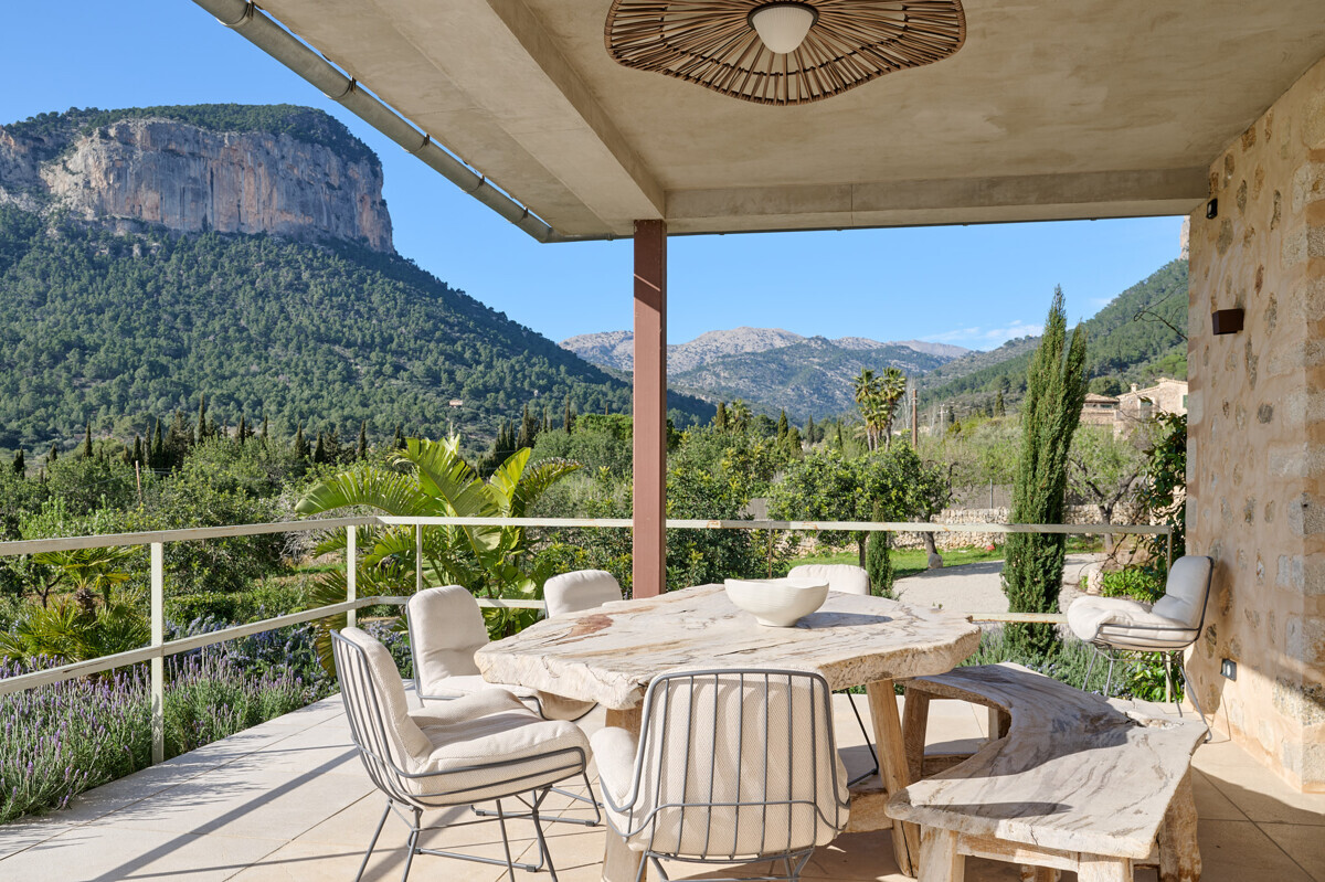 luminosa zona de entrada, cocina abierta totalmente equipada con electrodomésticos Gaggenau y zona de comedor, salón-comedor abierto con chimenea, 1 dormitorio con baño en suite, 1 dormitorio con vestidor y baño en suite, acceso a la terraza con piscina, jacuzzi, barbacoa, amplio jardín mediterráneo bellamente ajardinado con olivos y árboles frutales.