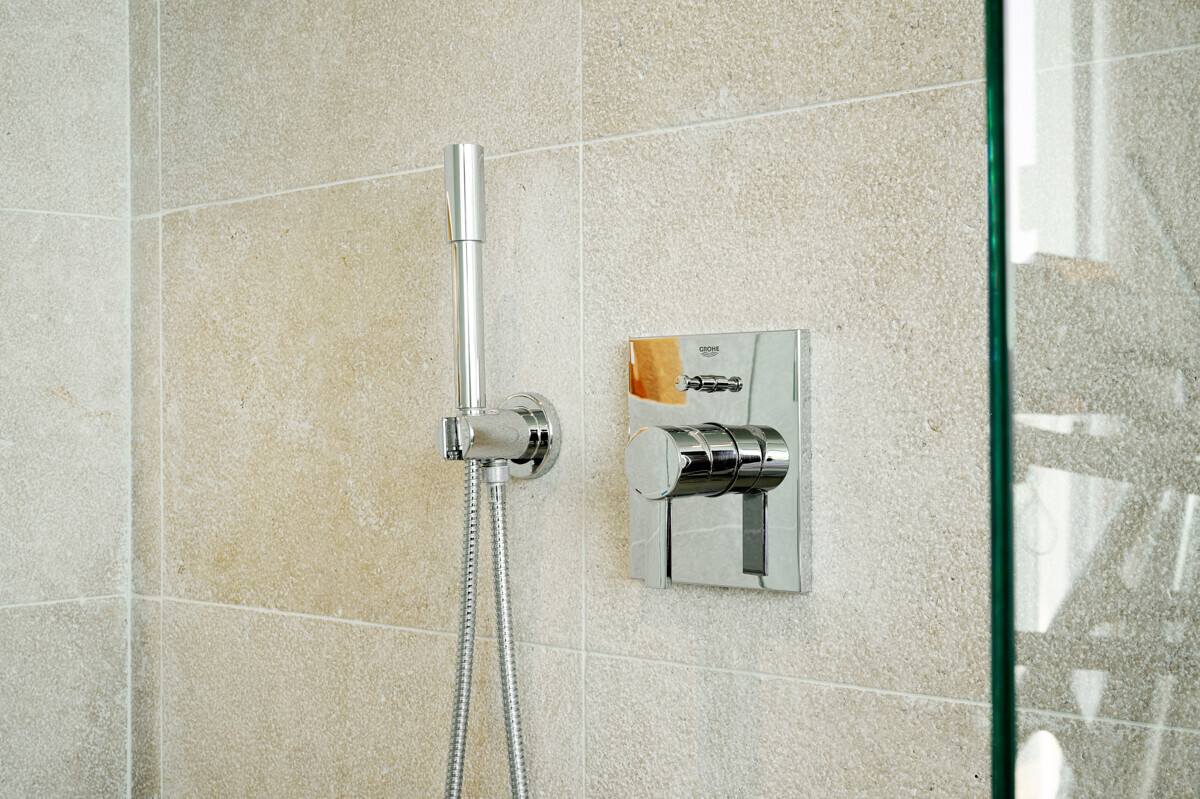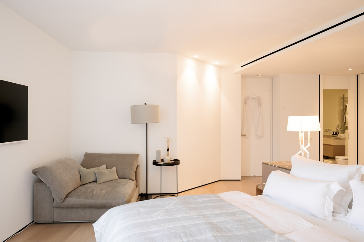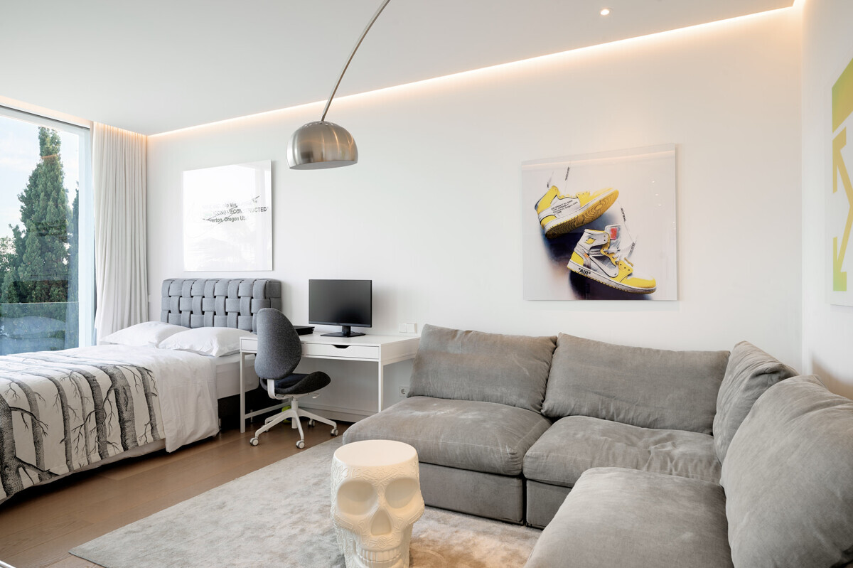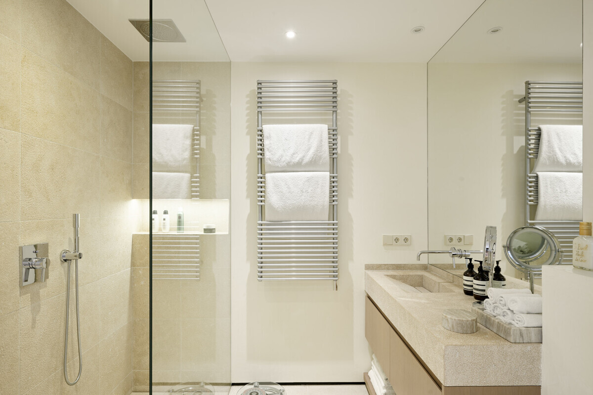 1 dormitorio principal con vestidor y baño en suite, 2 dormitorios con baños en suite, zona de fitness con baño - también se puede utilizar como un cómodo dormitorio