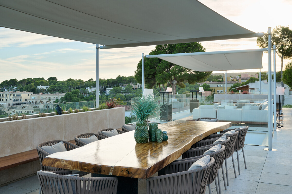 Exclusiva terraza en la azotea con salón chill-out, cocina de verano e impresionantes vistas panorámicas