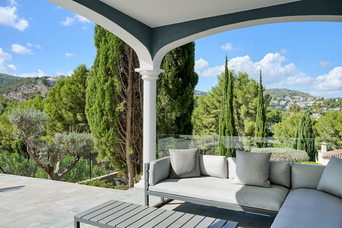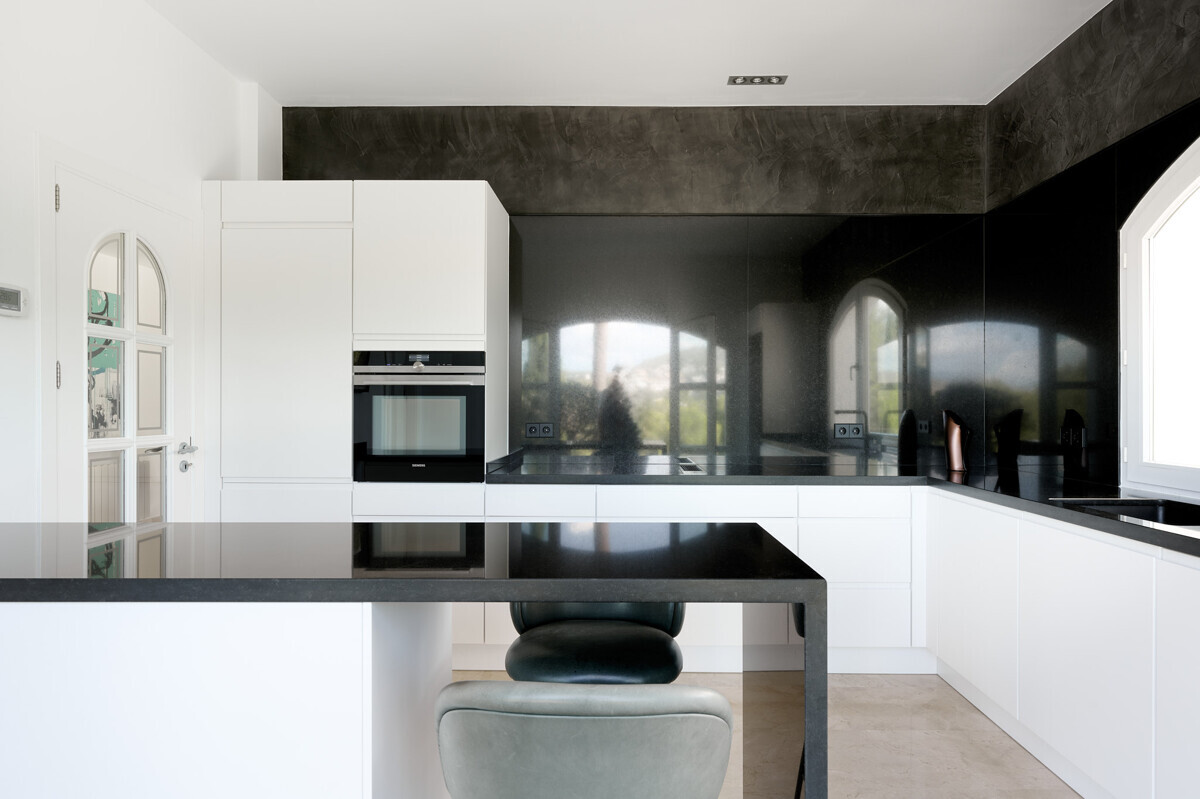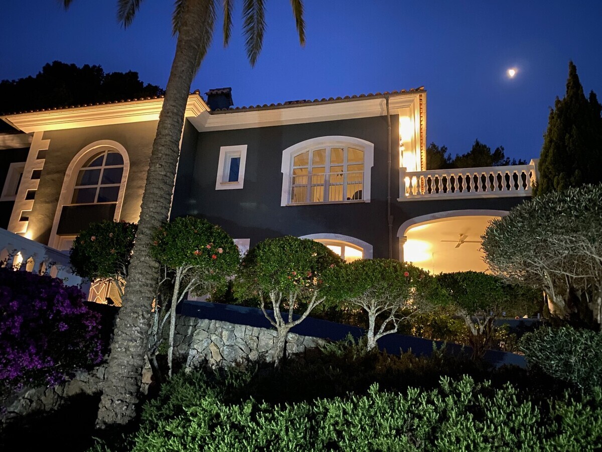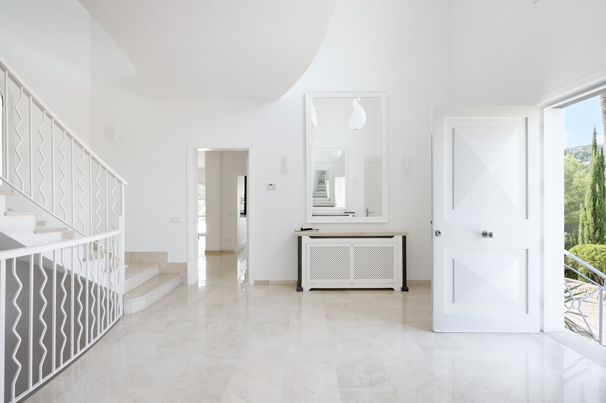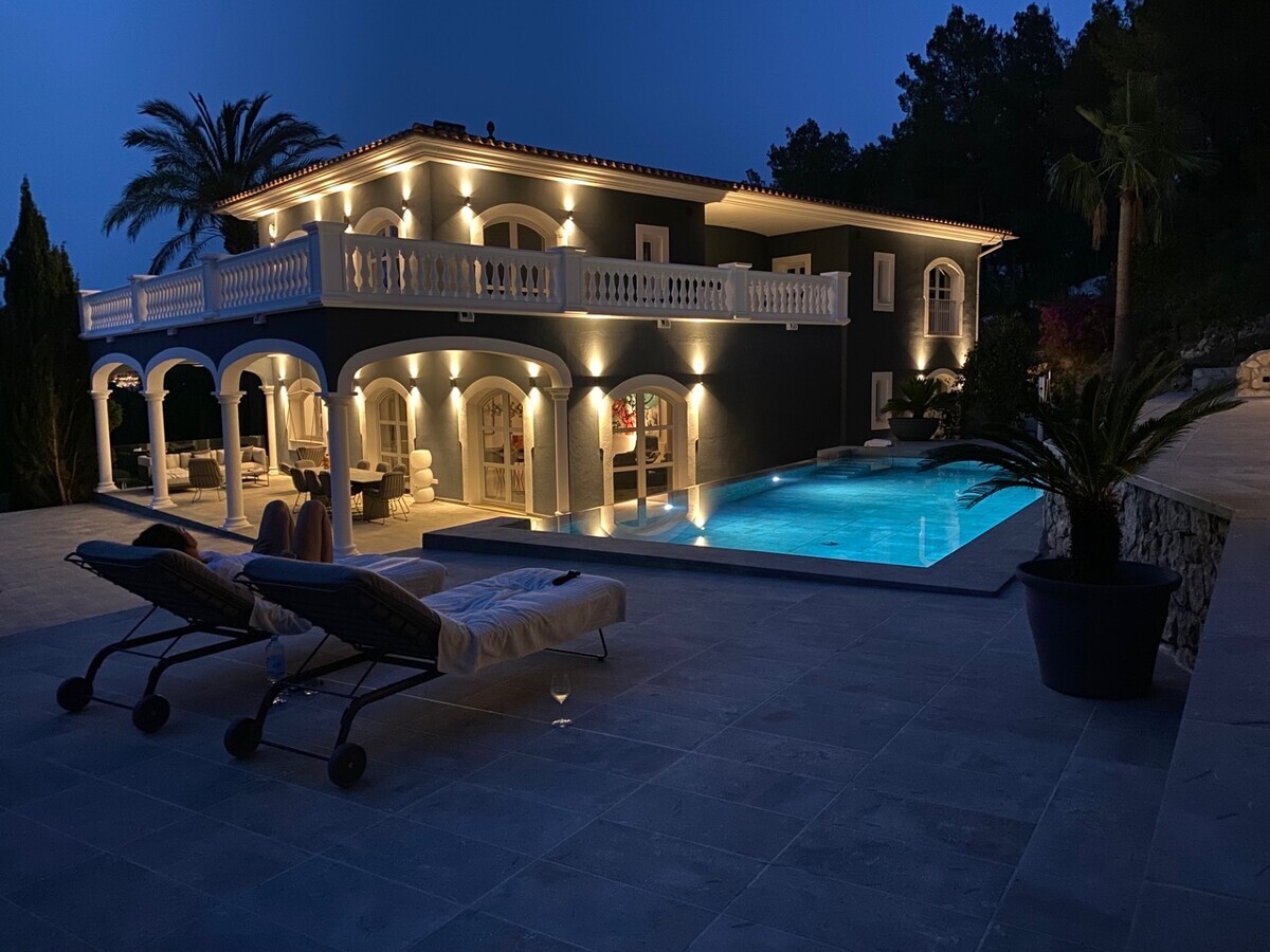 heller Eingangsbereich, grosszügiger Wohn- Esszimmer, voll ausgestattete Küche, Hauswirtschaftsraum, 2 Schlafzimmer mit Bad en Suite, Zugang zur überdachten Terrasse, Infinity Pool mit Sonnenterrasse, traumhaft schön angelegter Garten