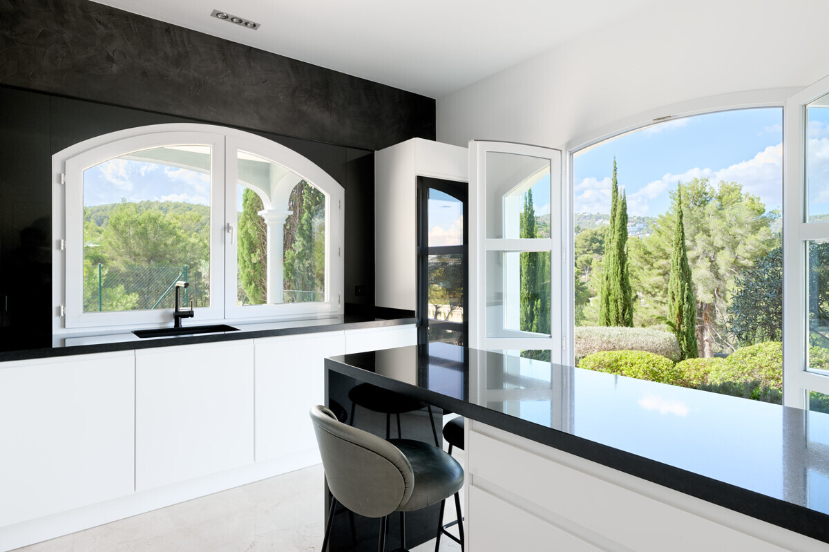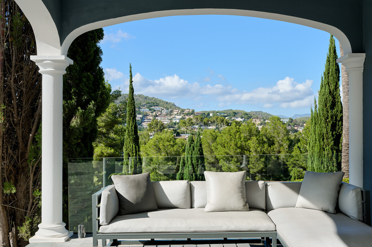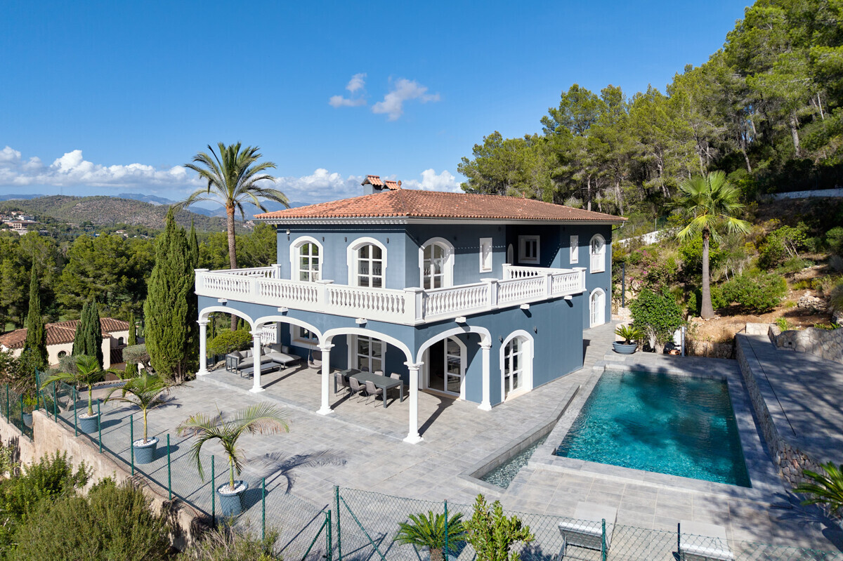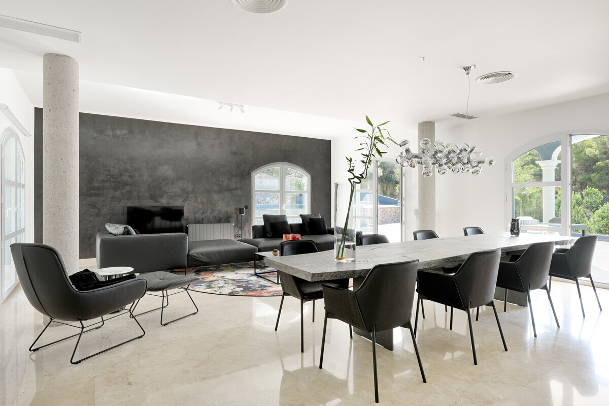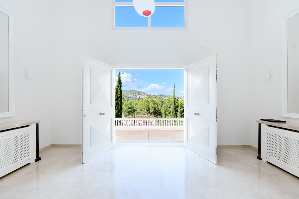 heller Eingangsbereich, grosszügiger Wohn- Esszimmer, voll ausgestattete Küche, Hauswirtschaftsraum, 2 Schlafzimmer mit Bad en Suite, Zugang zur überdachten Terrasse, Infinity Pool mit Sonnenterrasse, traumhaft schön angelegter Garten