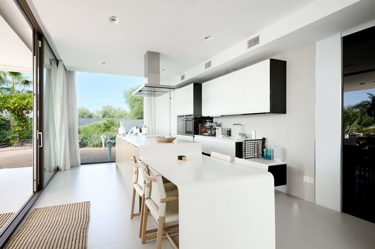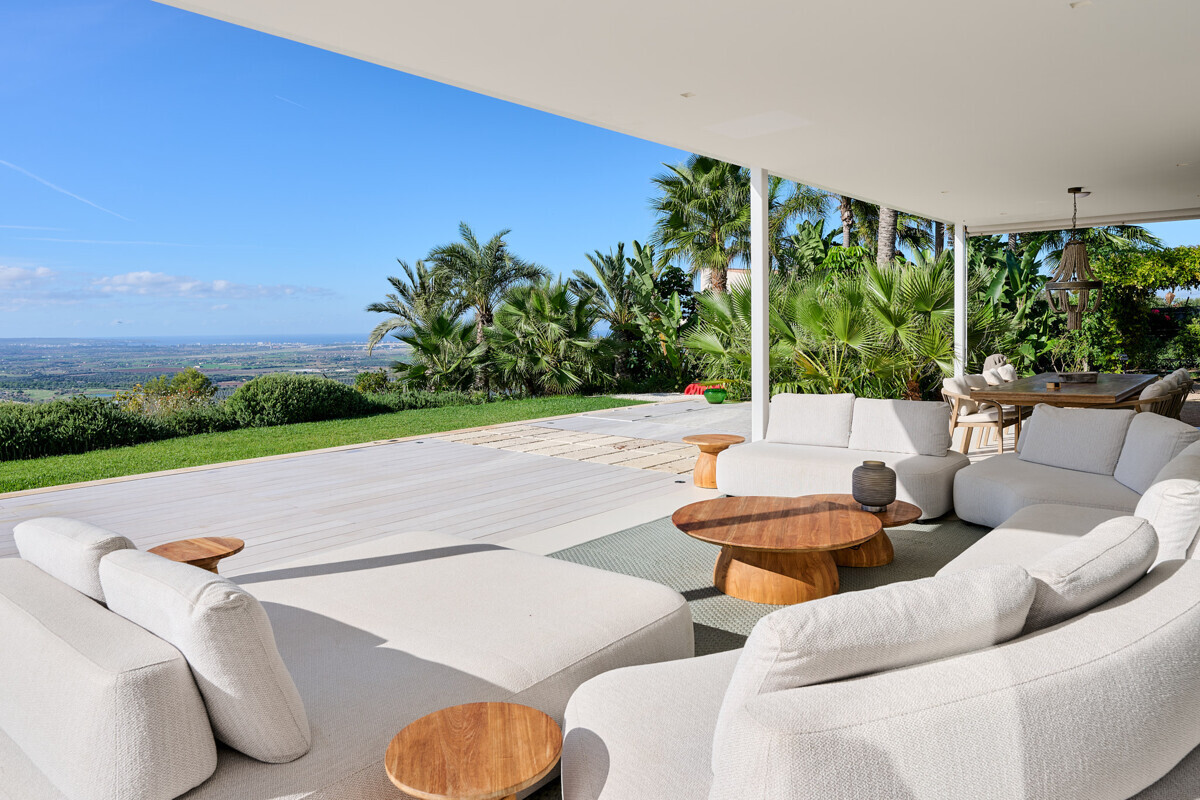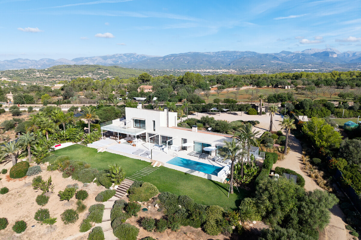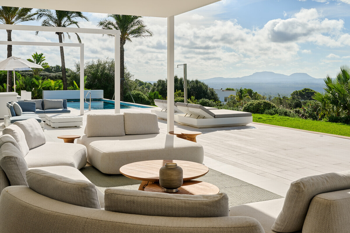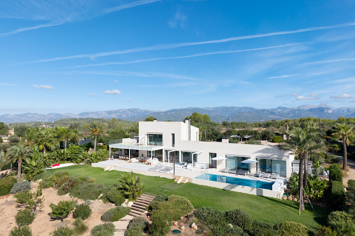 2 Schlafzimmer mit Panoramablick über den Pool, 2 Badezimmer, offene voll ausgestattete Küche, grosszügiges helles Wohn- Esszimmer mit Kamin und angrenzendem Büro, Zugang zur überdachten Terrasse, Loungearea, Aussenküche mit BBQ & Pizzaofen, Poolbereich mit grosser Sonnenterrasse, traumhaft schön angelegter mediterraner Garten