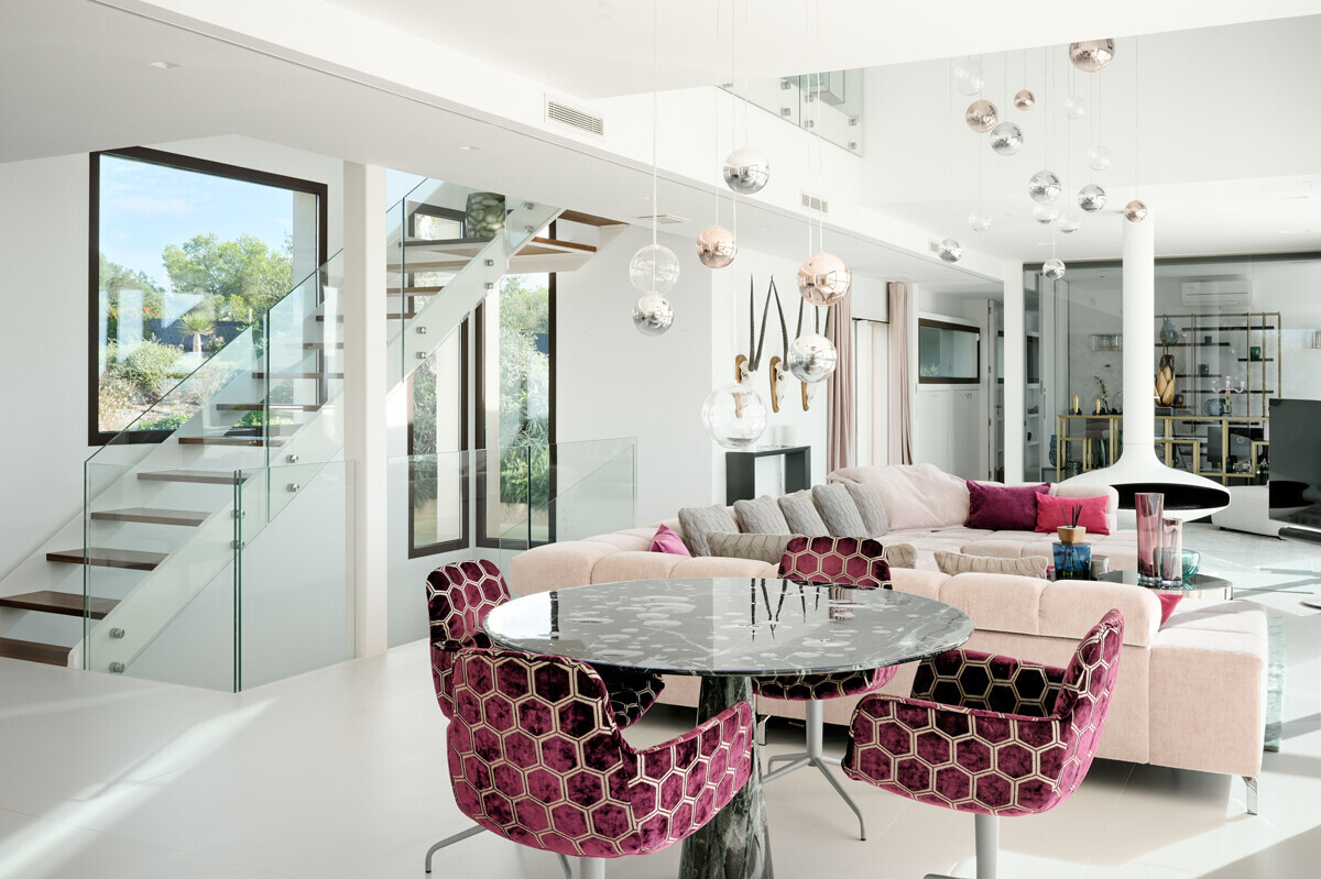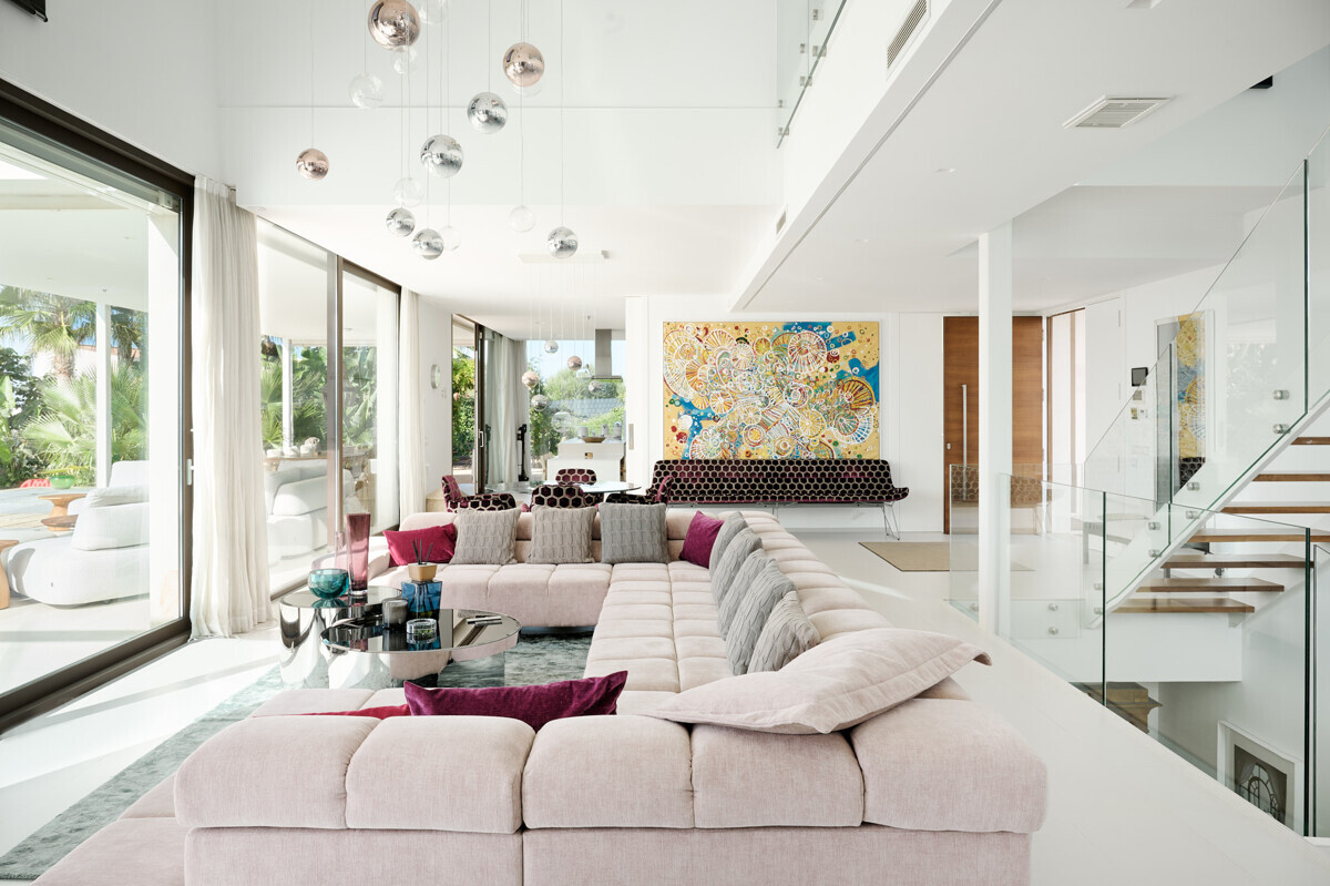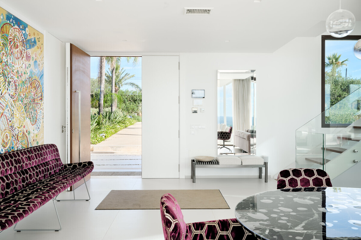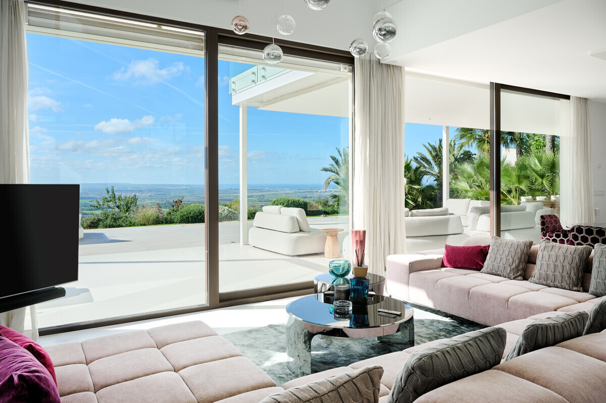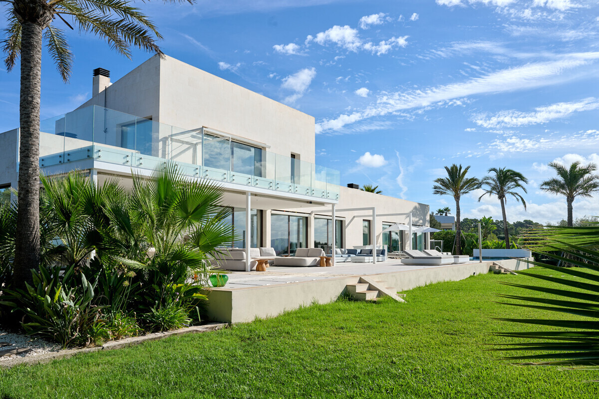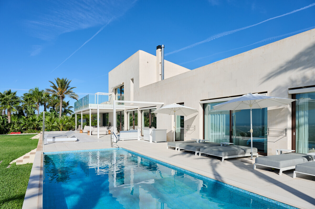 2 Schlafzimmer mit Panoramablick über den Pool, 2 Badezimmer, offene voll ausgestattete Küche, grosszügiges helles Wohn- Esszimmer mit Kamin und angrenzendem Büro, Zugang zur überdachten Terrasse, Loungearea, Aussenküche mit BBQ & Pizzaofen, Poolbereich mit grosser Sonnenterrasse, traumhaft schön angelegter mediterraner Garten