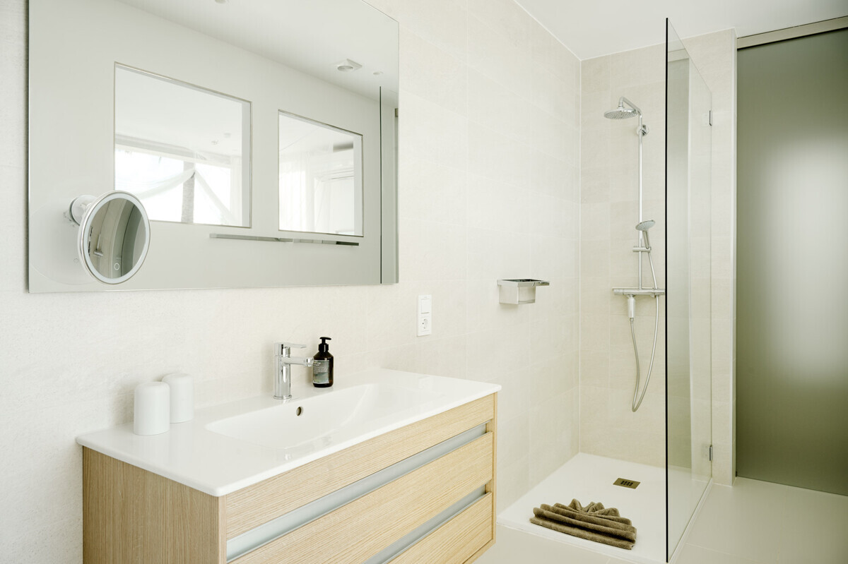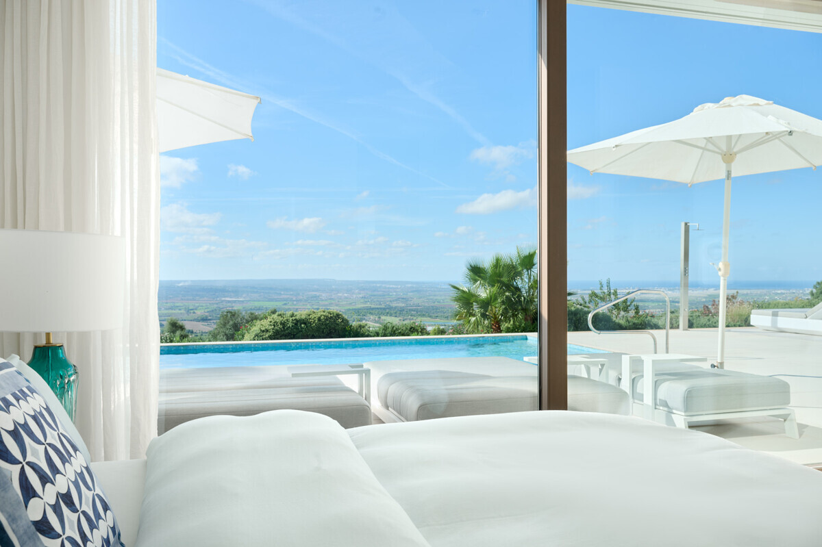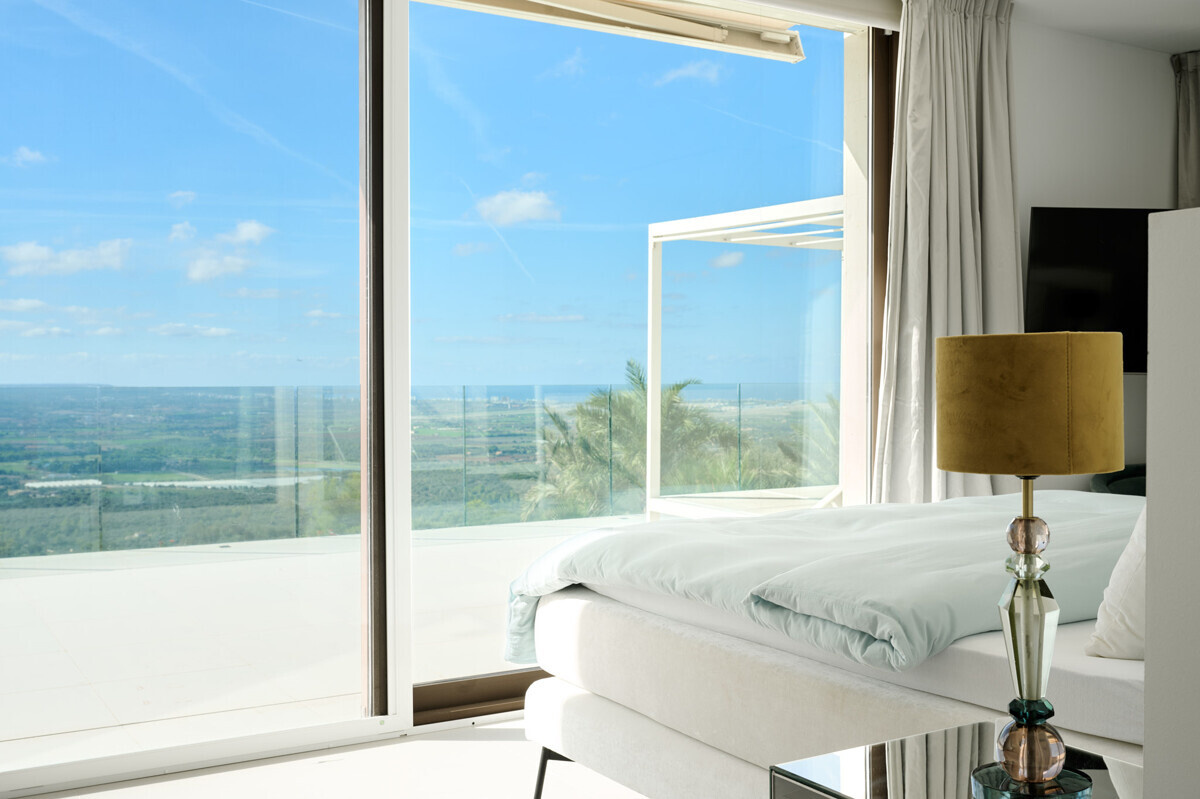 1 Masterbedroom mit Safetyroomfunktion, Ankleide, Bad en Suite sowie privater Terrasse mit einzigartigem Ausblick