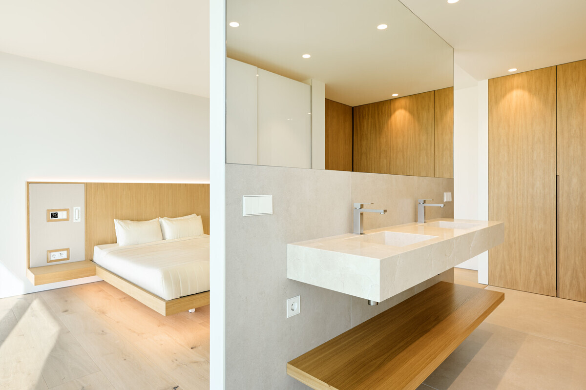 1 Masterbedroom mit Ankleide und Bad en Suite sowie 2 weitere Schlafzimmer mit Bad en Suite - alle Zimmer haben direkten Terrassenzugang