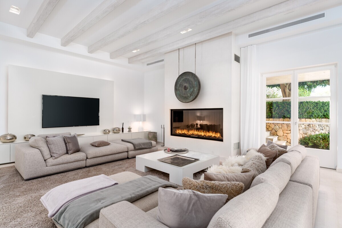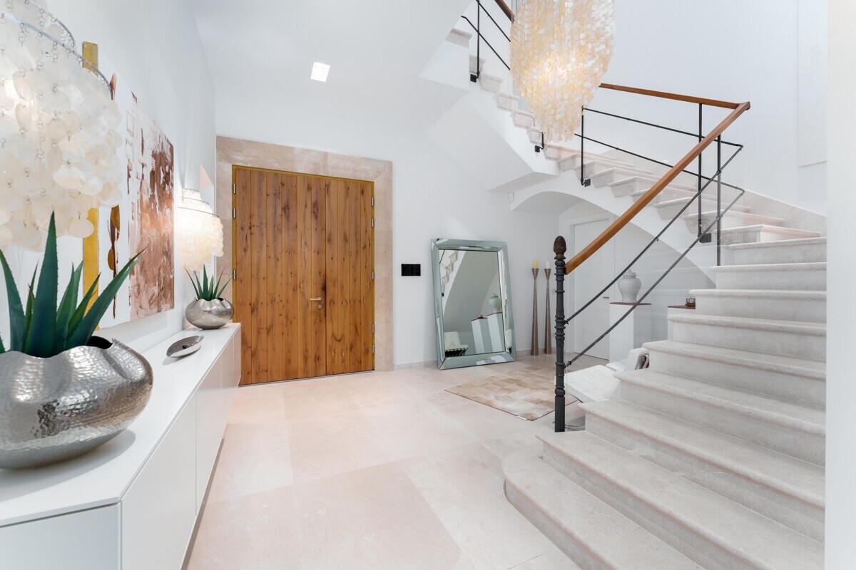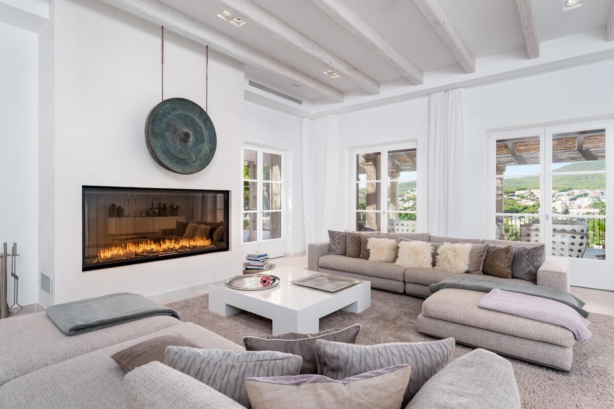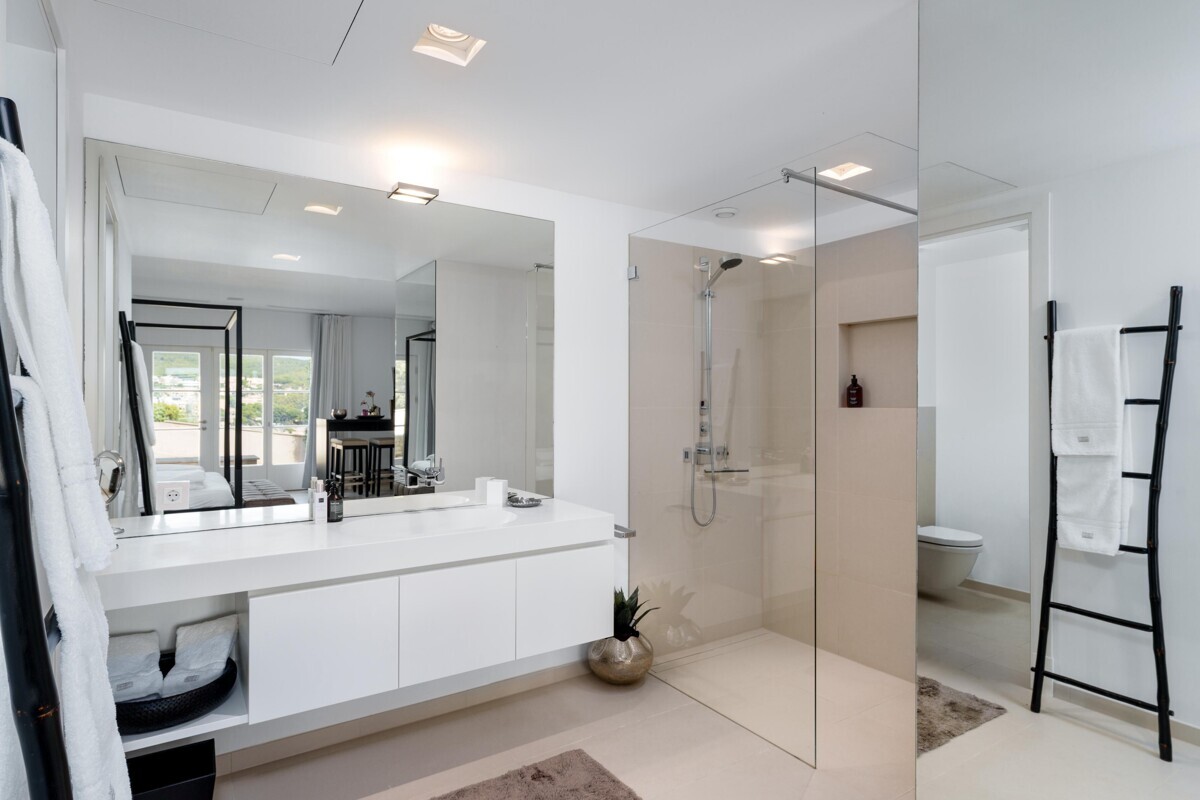 Die Villa erstreckt sich über drei Etagen und verfügt über ein modernes Design mit zahlreichen Lounge-Bereichen sowohl im Innen- als auch im Außenbereich. Jedes Schlafzimmer hat ein eigenes en-suite Badezimmer sowie ein Satelliten-TV. Sie können sich auf den verschiedenen Terrassen entspannen, egal ob Sie Schatten oder Sonne bevorzugen, ein erfrischendes Bad im beheizten Infinity-Pool oder im Whirlpool nehmen oder mit den modernen Technogym-Fitnessgeräten aktiv bleiben. Die zentral gesteuerte Klimaanlage und die Fußbodenheizung sorgen überall für angenehme Temperaturen. Eine Doppelgarage ist mit dem Haus verbunden, und es gibt einen zusätzlichen Parkplatz im Freien.